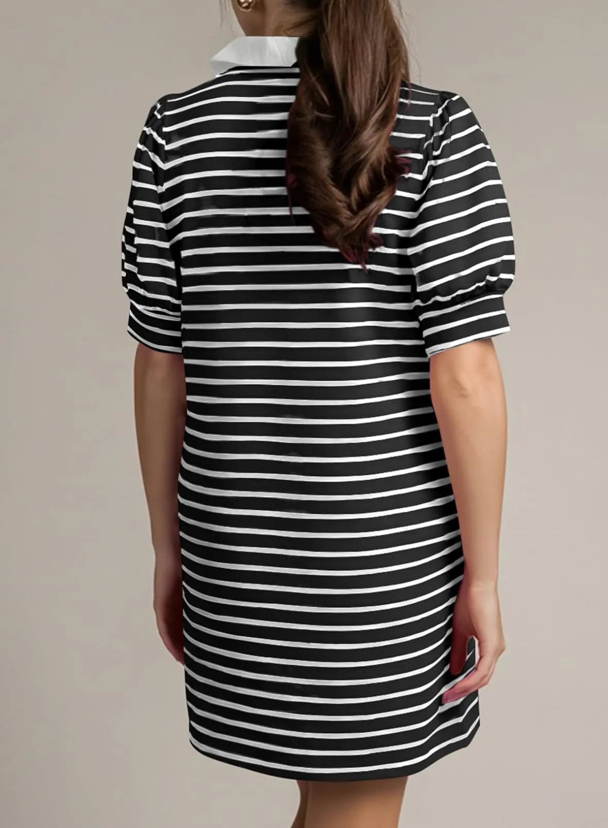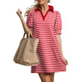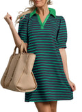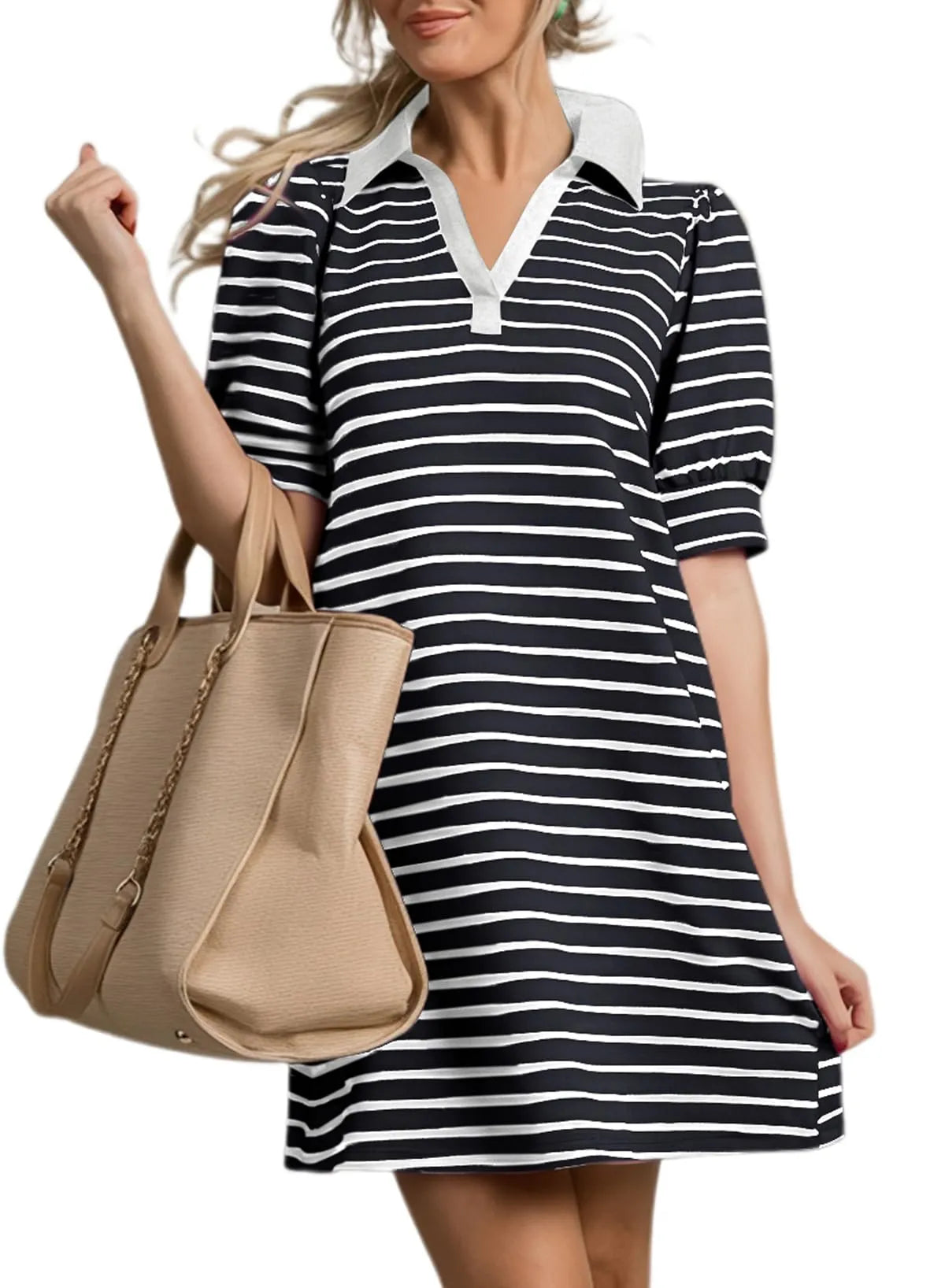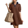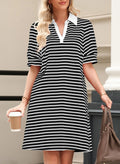 Women's Casual Polo V Neck T Shirt Striped Dress