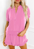 Women's Casual Puff Sleeve Top and Ruffle Shorts Set