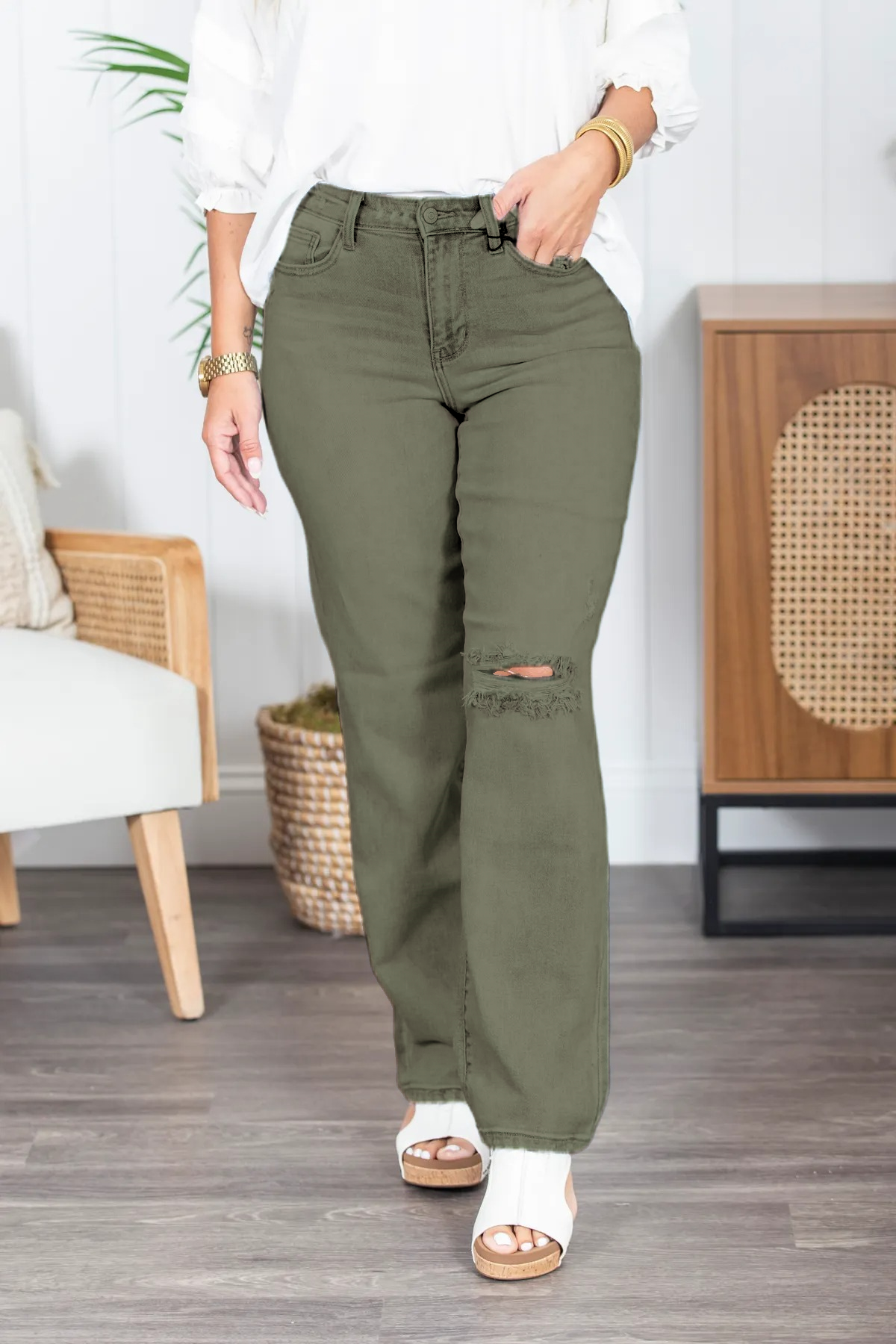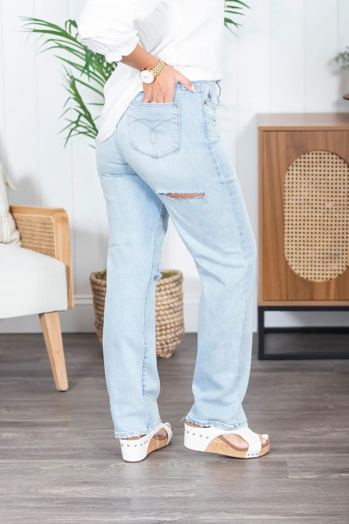 Women's Casual Ripped High Waisted Straight Leg Jeans With Pockets