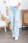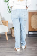 Jeans DO come with an intentional Tear in the Denim. The Tear is under the Back Right Pocket of the Jeans.Wide leg jean could flatter a variety of leg types, providing ample room for movement and breathability. They're a versatile and practical addition to any wardrobe. Simplifying styling with these all-match loose fit wide leg denim pants.