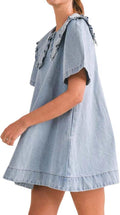 Women's Casual Ruffle Lapel Babydoll Denim Dress