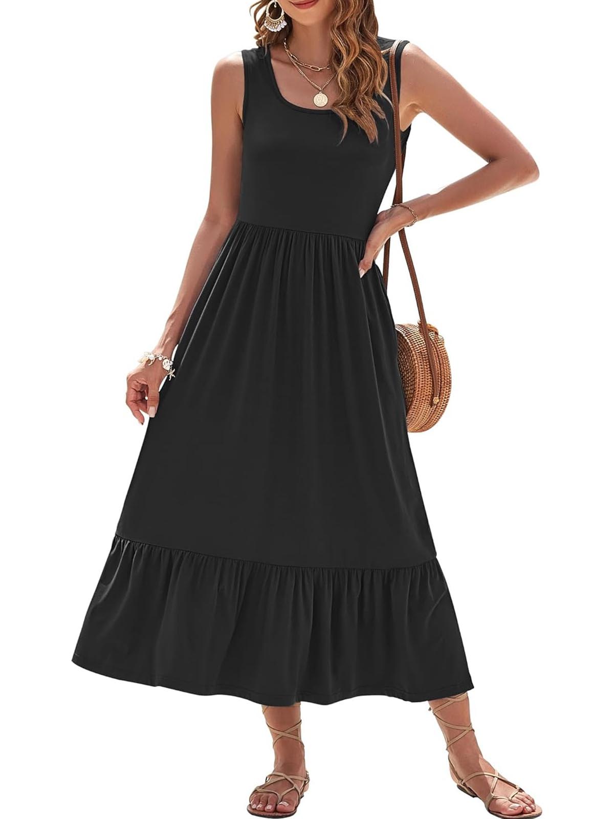 This sleeveless vest dress has a U-neck design, which makes your neck look longer. With a flowing hem, it easily highlights your curves.