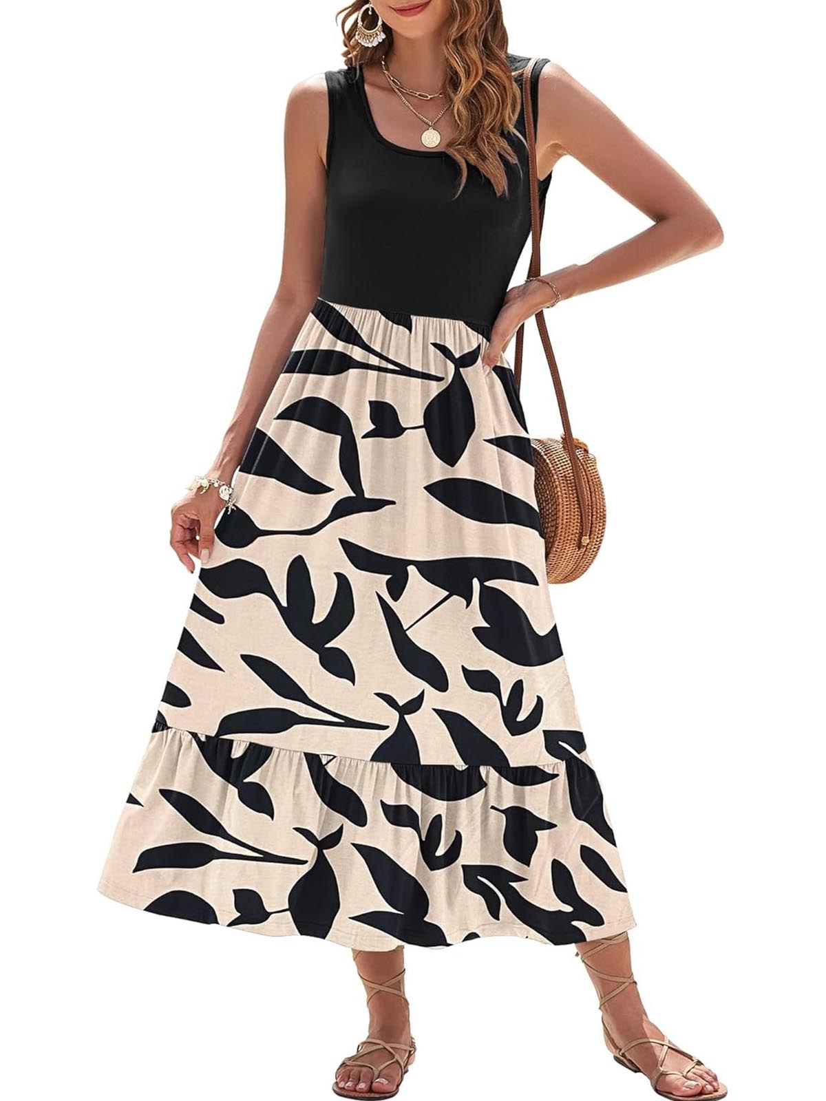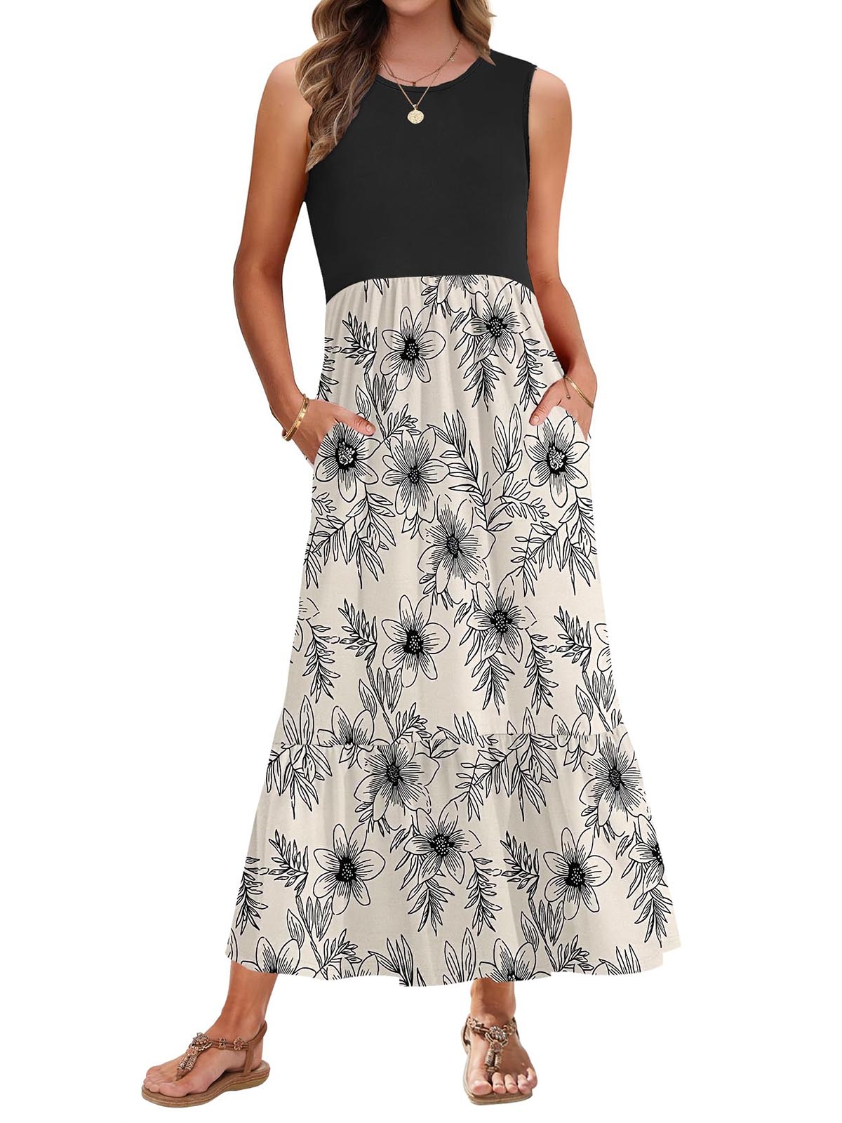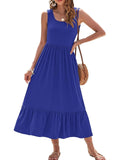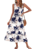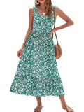Women's Casual Sleeveless Square Neck Printed Multi-Layer Pocket Dress