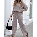 Women's Casual Solid Color Long Sleeve Top and Pants Set