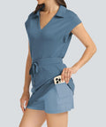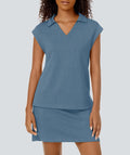 Women's Casual Sports Cap Sleeve Lapel Shirt Skirt Two-Piece Set