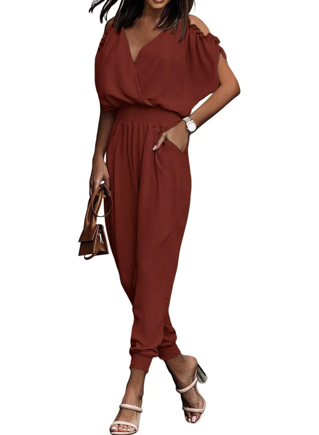 Women's Casual Summer Off-the-shoulder Jumpsuit with Pockets