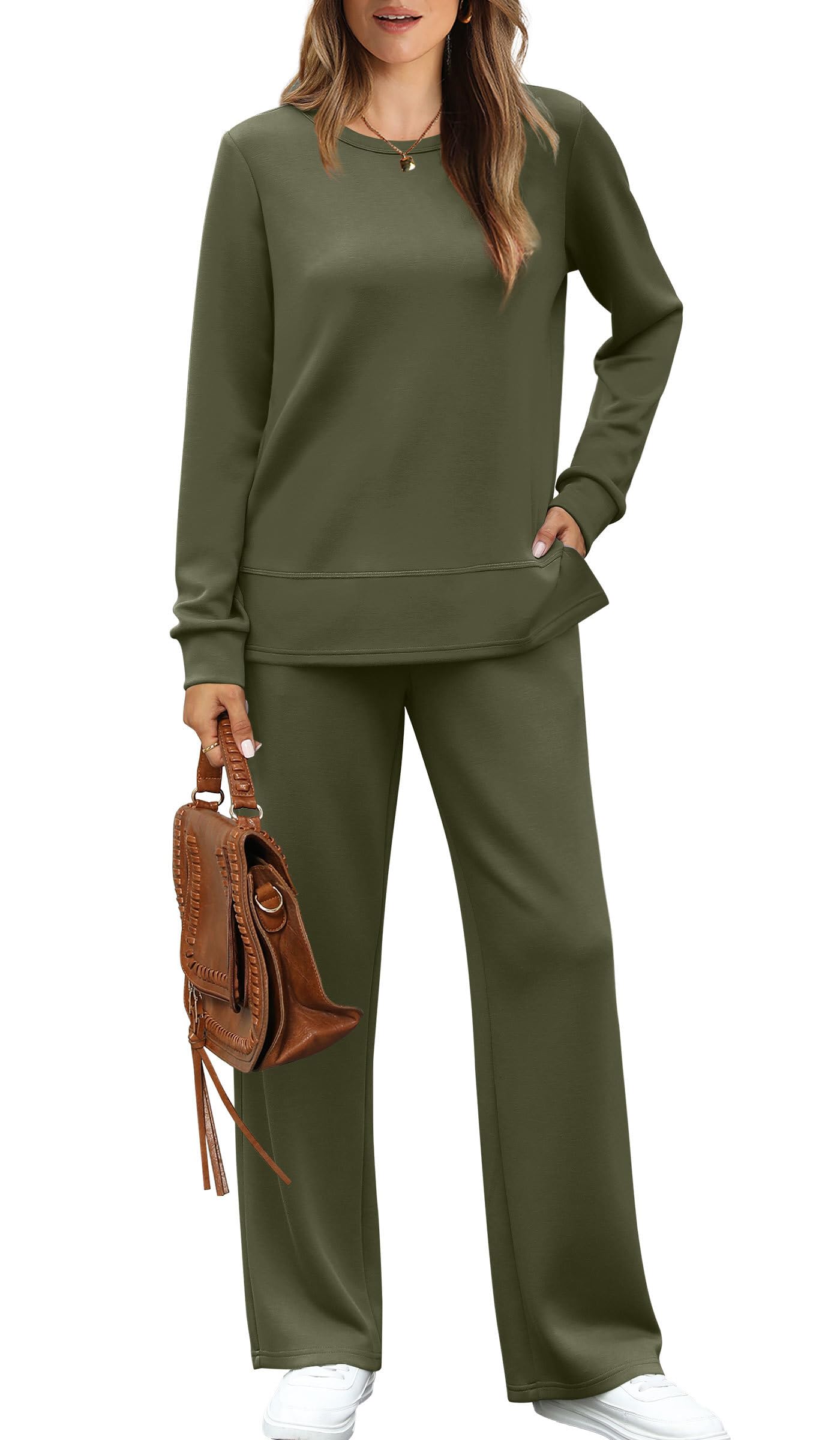 Women's Casual Sweatshirt and Wide-Leg Pants Travel Set
