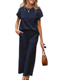 Women's Casual Textured Tops and Wide Leg Pants Lounge Sets