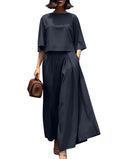 Women's Casual Three Quarter Sleeve Top and Wide-leg Pants Lounge Set