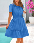 Women's Casual V Neck Sundress Smocked Waist A Line Tiered Mini Dress