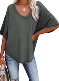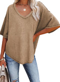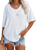 Women's Causual V Neck Short Sleeve Shirts Waffle Knit Loose Tunic Tops