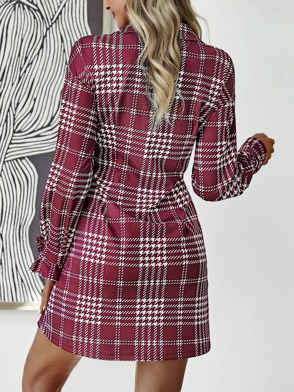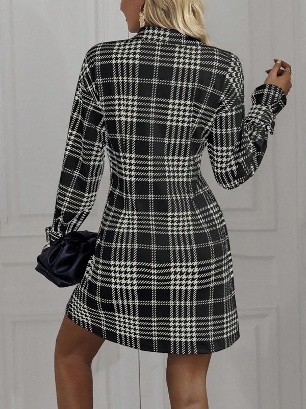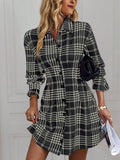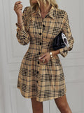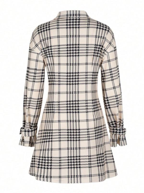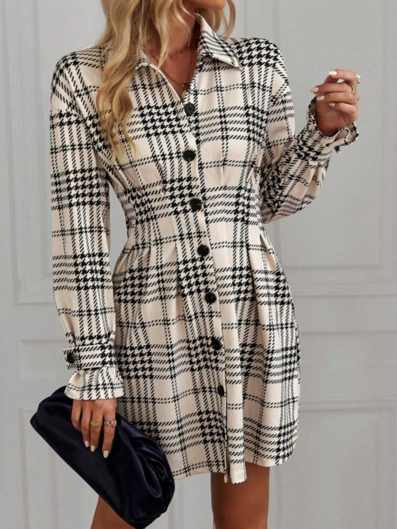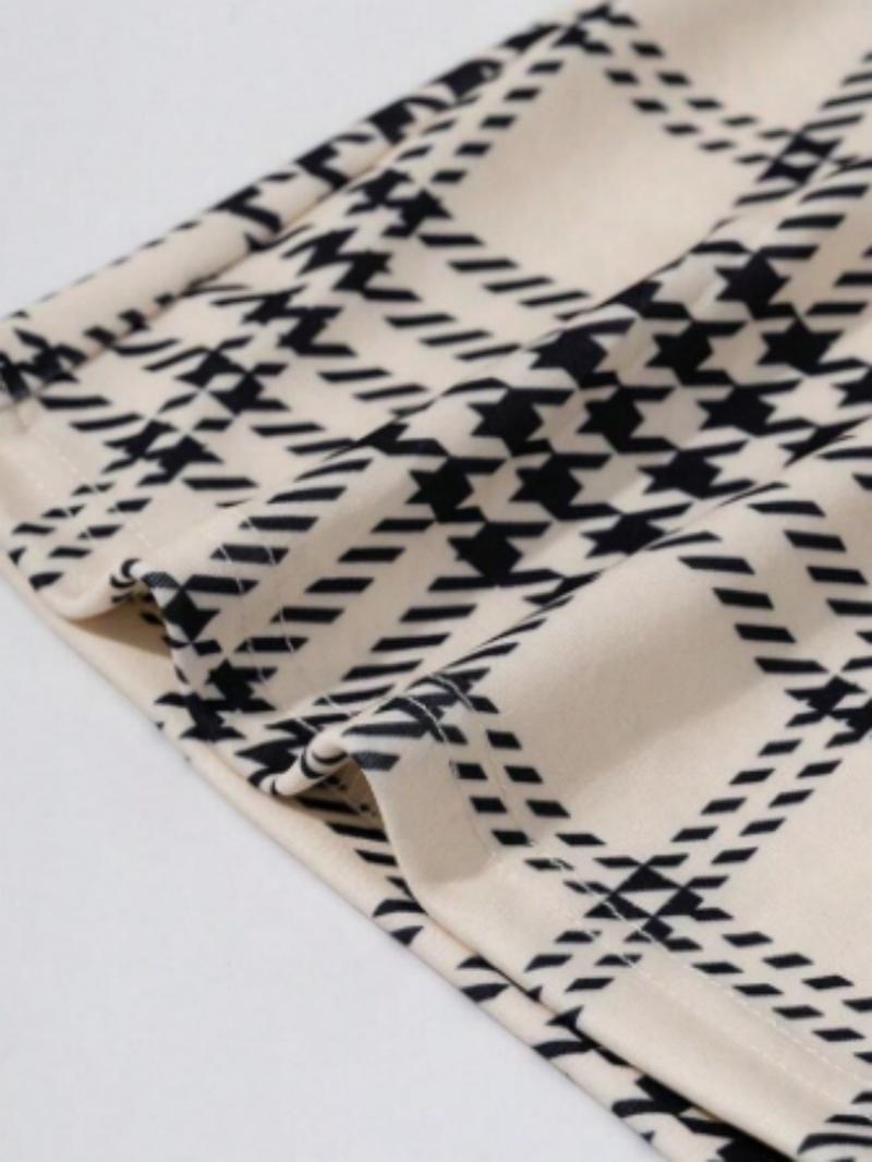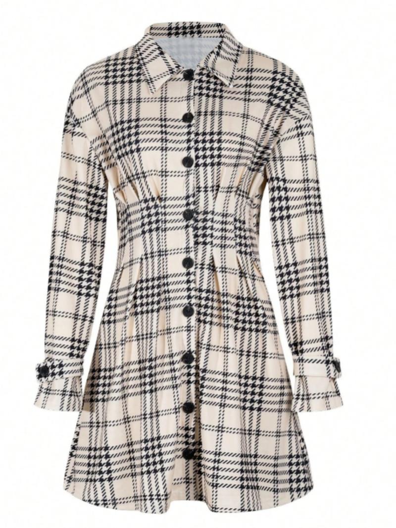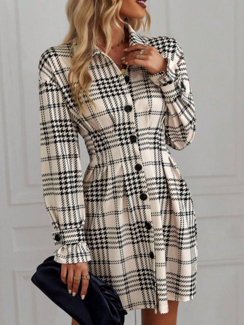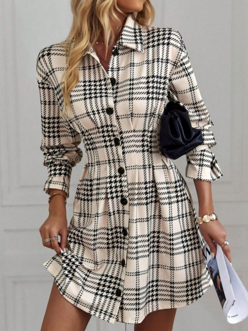 【Unique Check Pattern】: The dress showcases a distinctive beige check pattern, providing a trendy twist to a classic design.