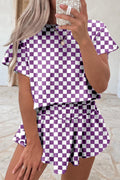 Women's Checkerboard T Shirt and High Waist Skorts 2 Piece Set