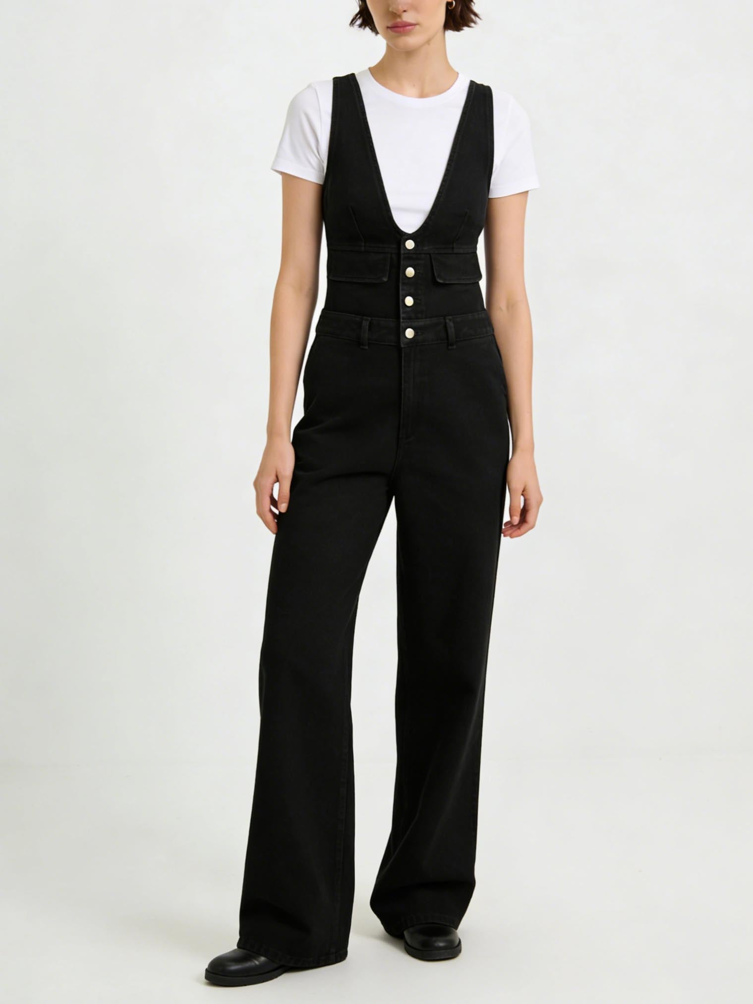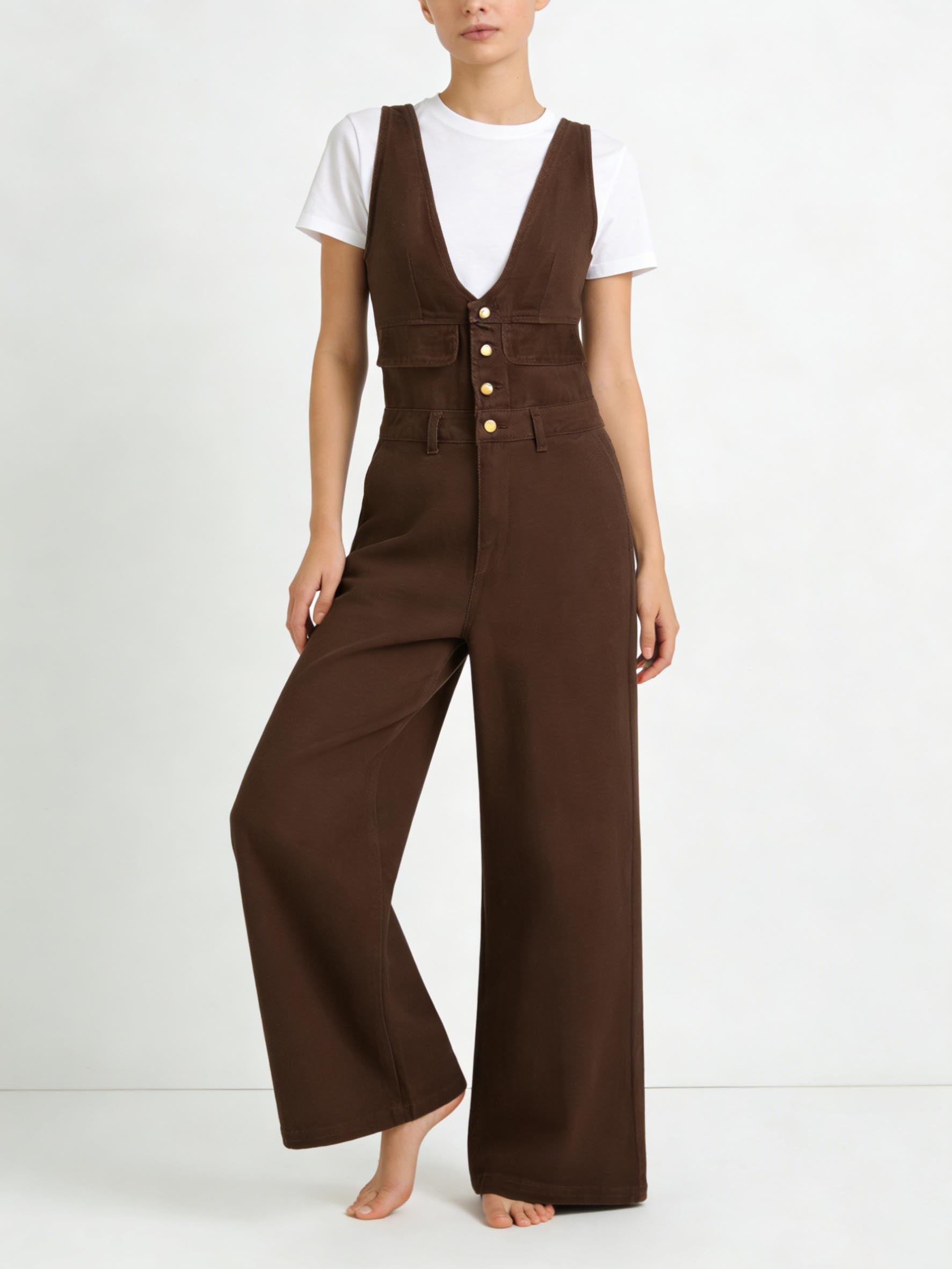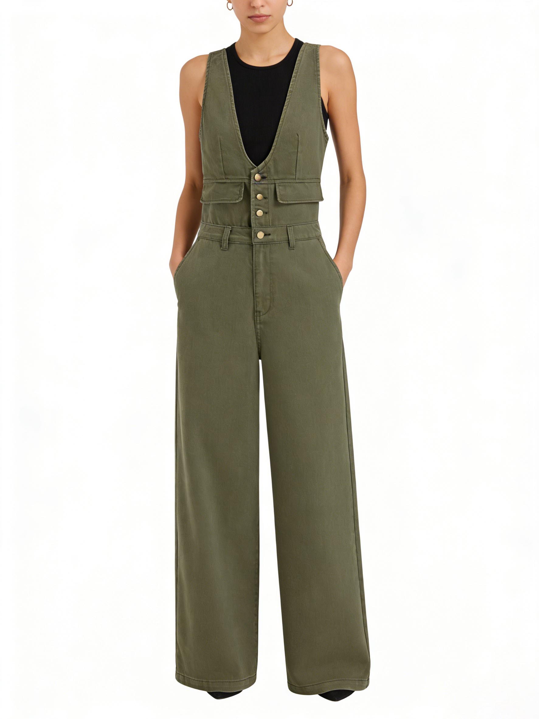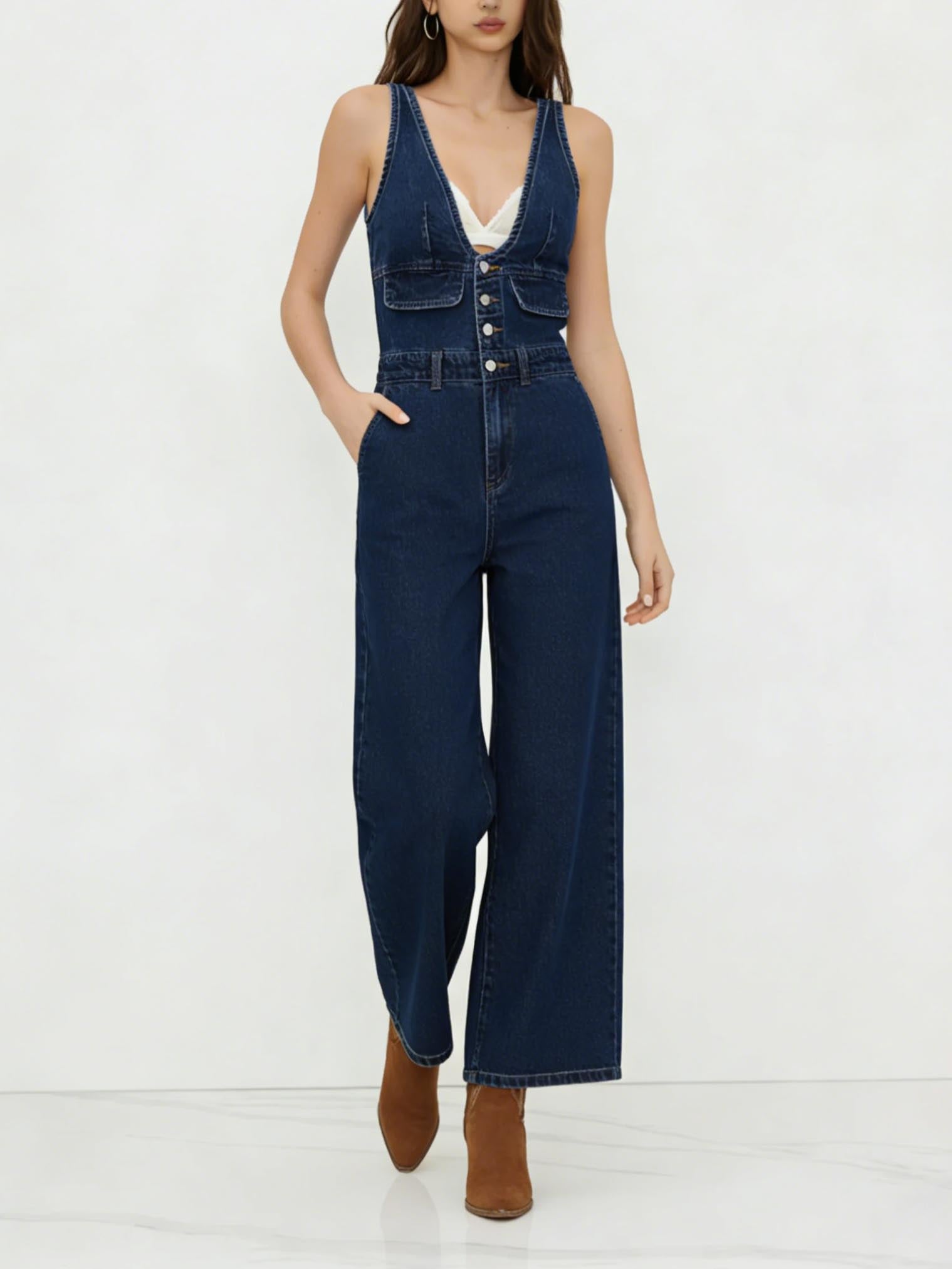 Women's Chic V-Neck Relaxed Fit Denim Jumpsuit