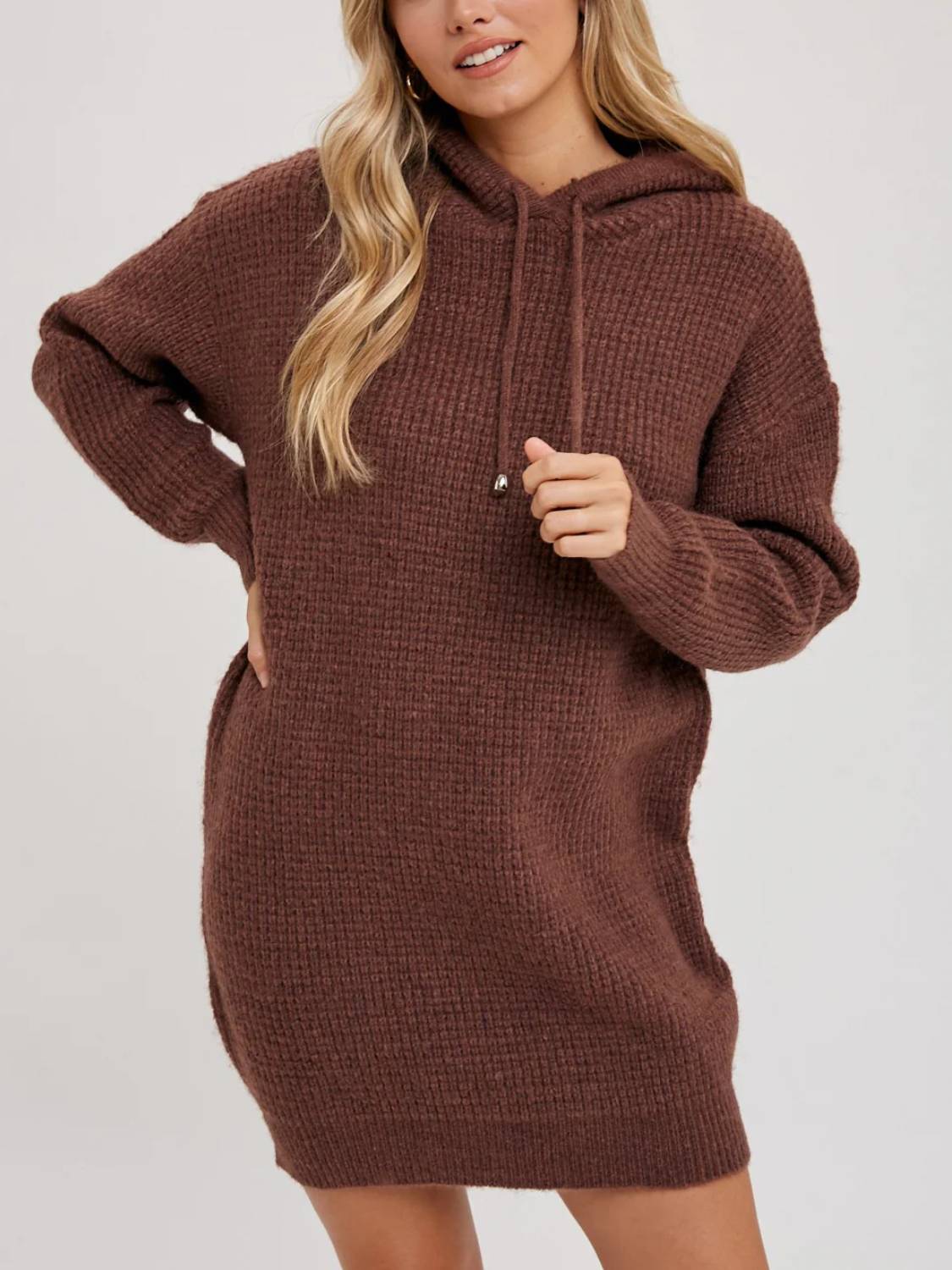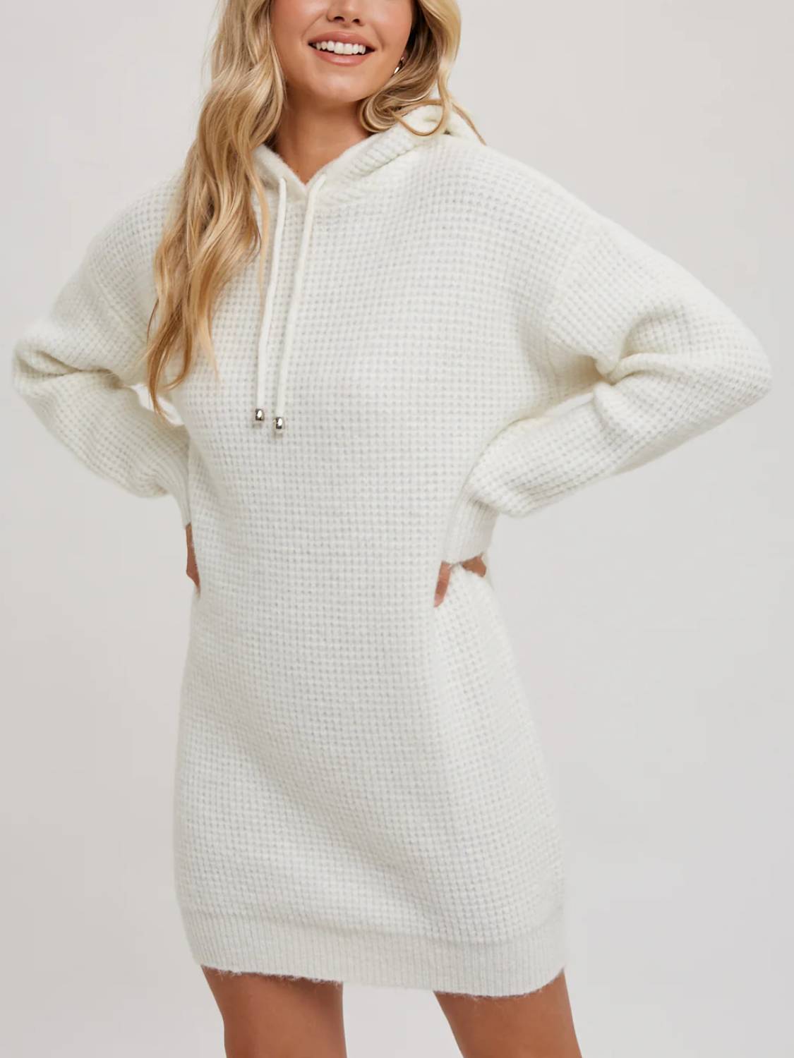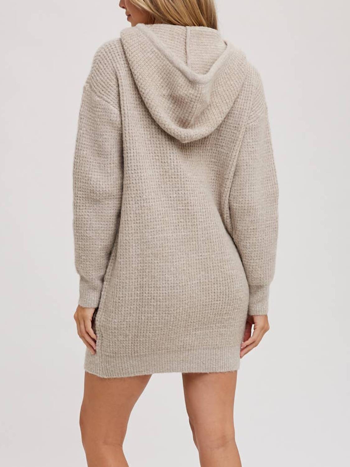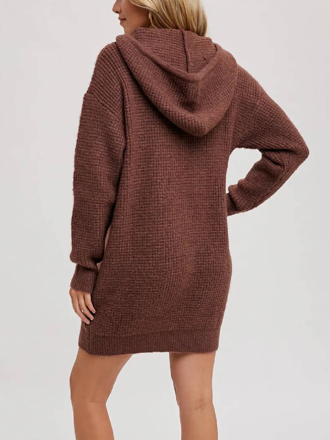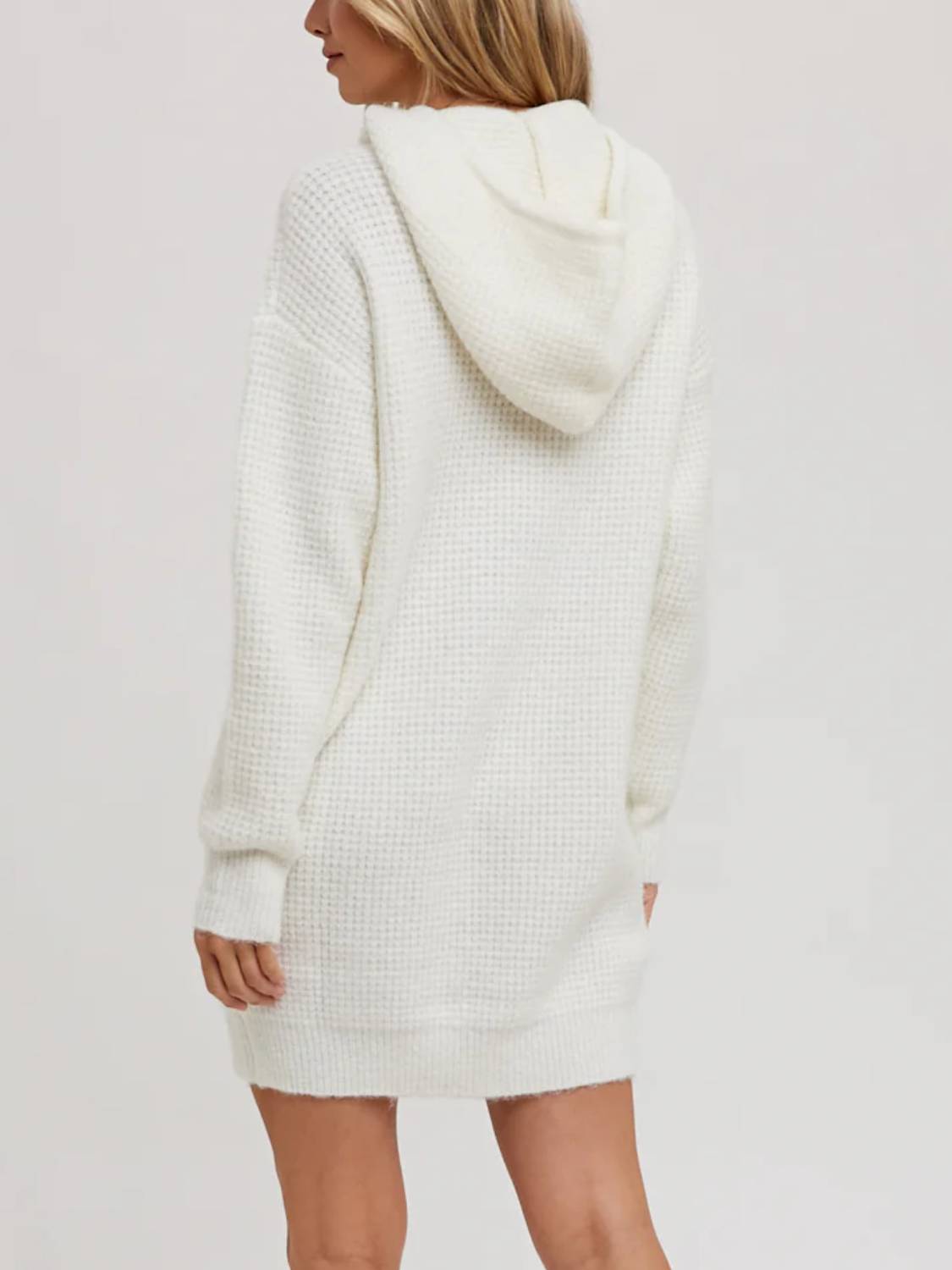 Introducing a versatile and cozy chunky waffle hoodie tunic that seamlessly combines comfort and style. This tunic features a chunky waffle knit texture that adds depth and visual interest to your ensemble. With its longer length, it can also be worn as a dress, offering flexibility in styling.