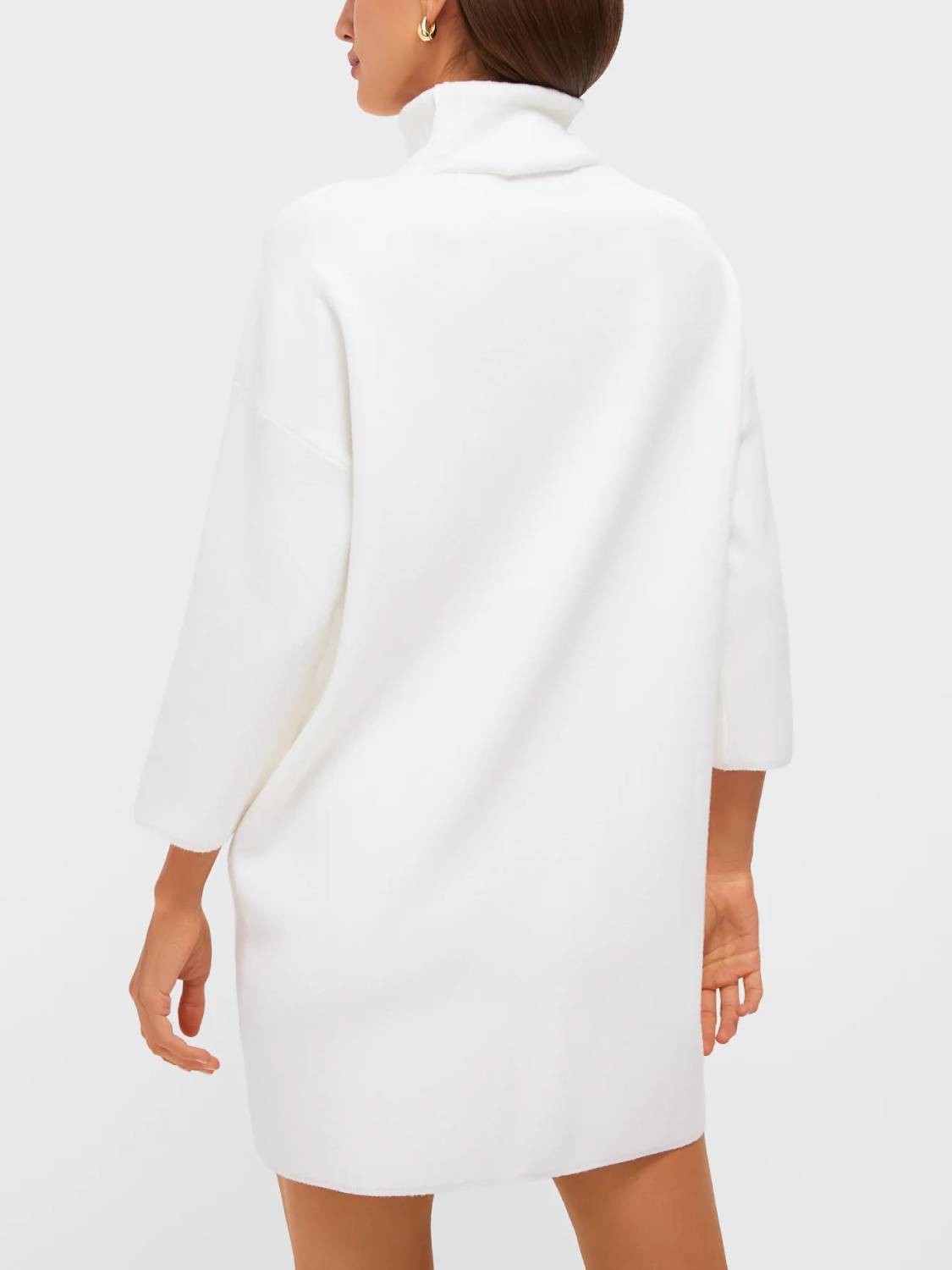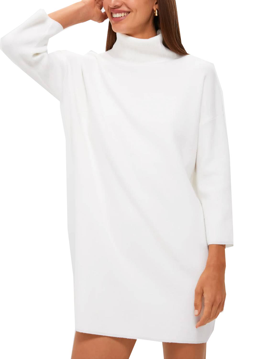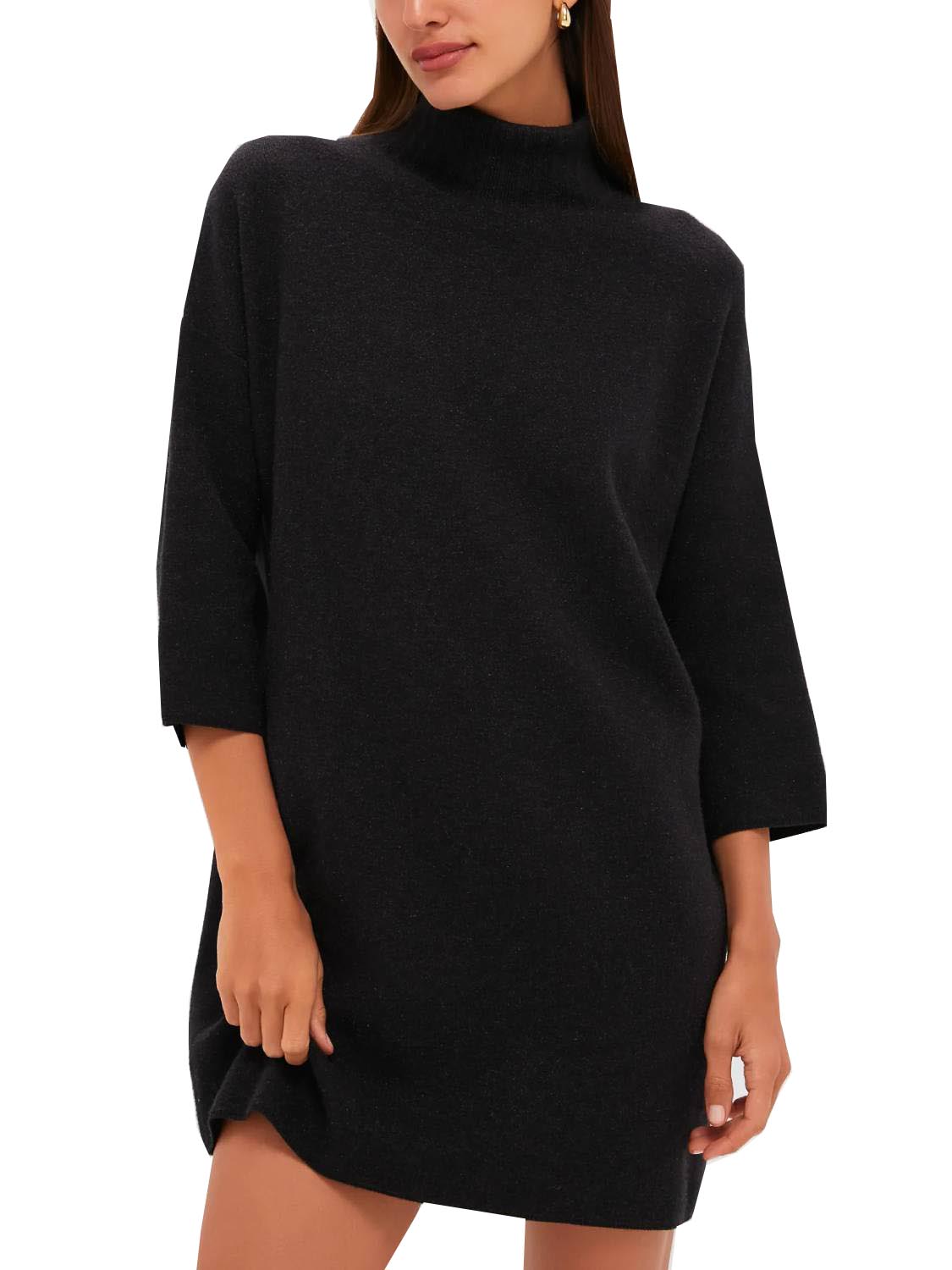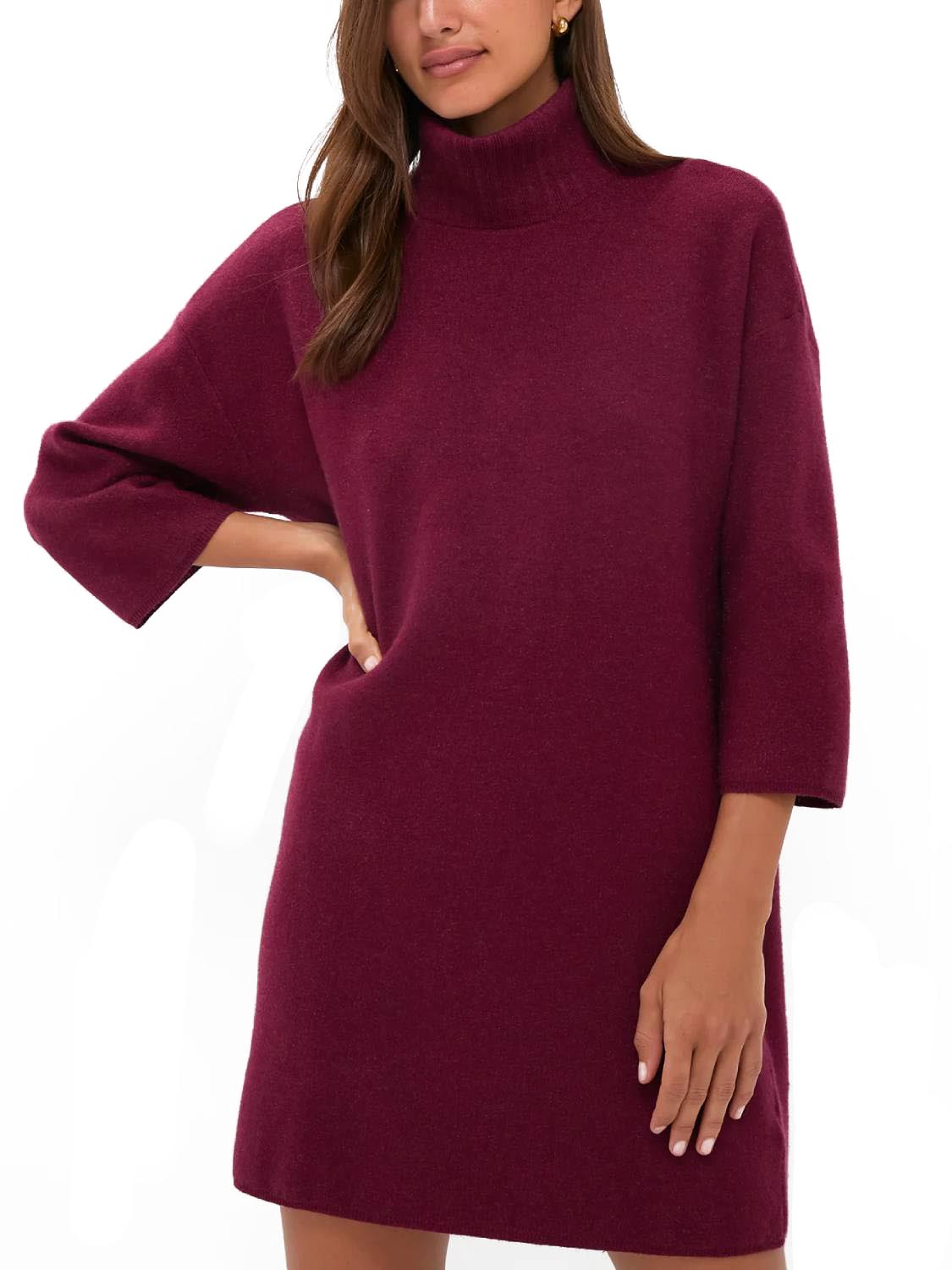 Meet the newest addition to your cold-weather wardrobe—the classic turtleneck sweater dress. This modern dress features comfortable fabric, a high neckline, and short yet minimal sleeves—perfect for cool fall days, holiday parties, and winter get-togethers!