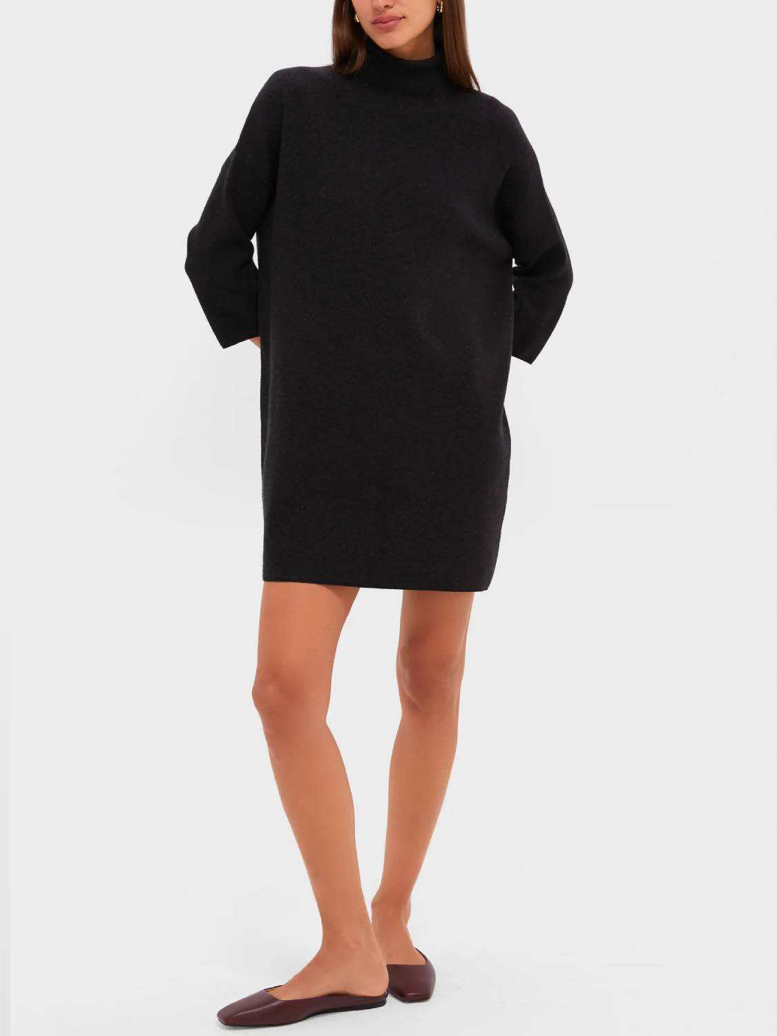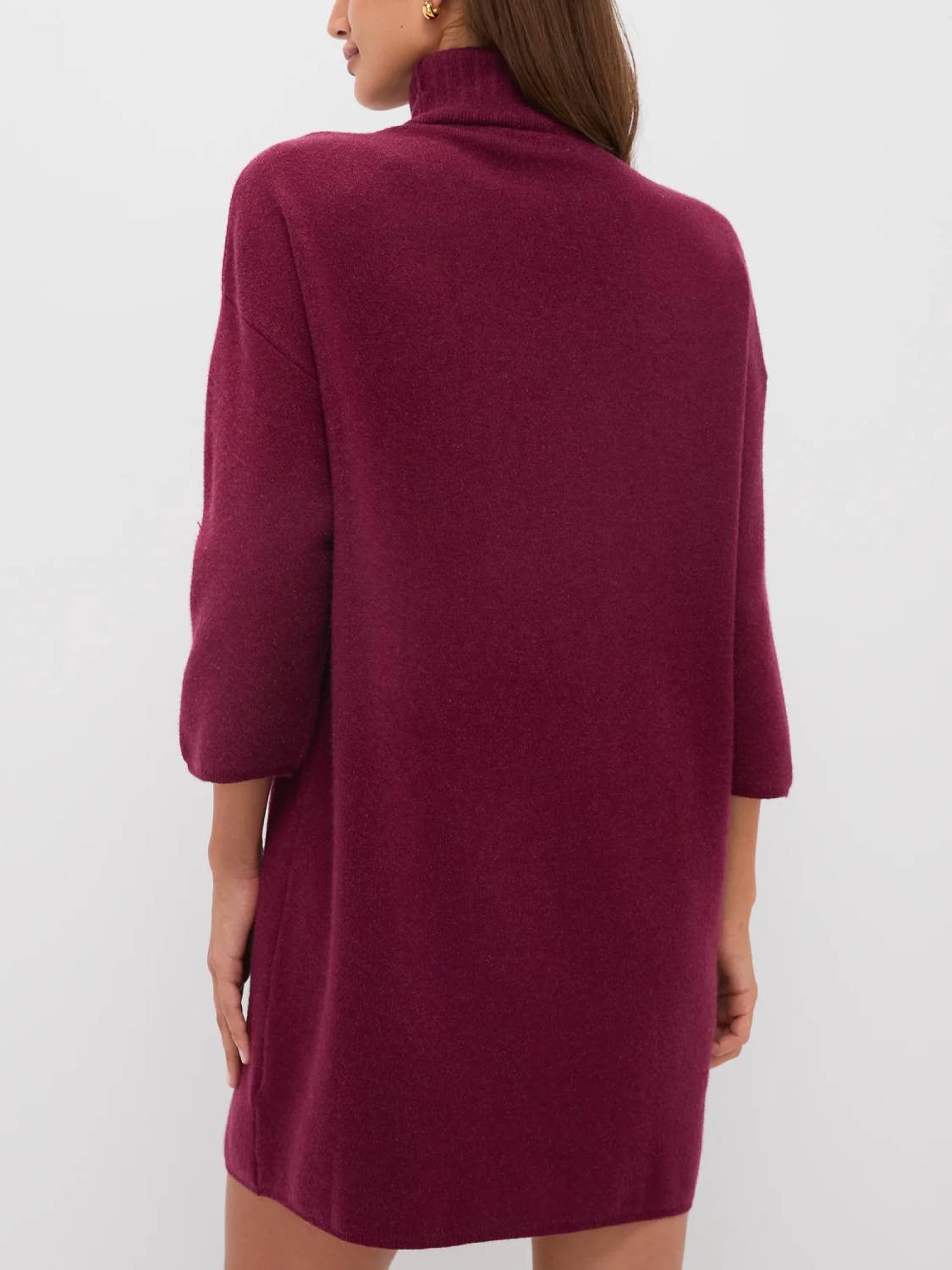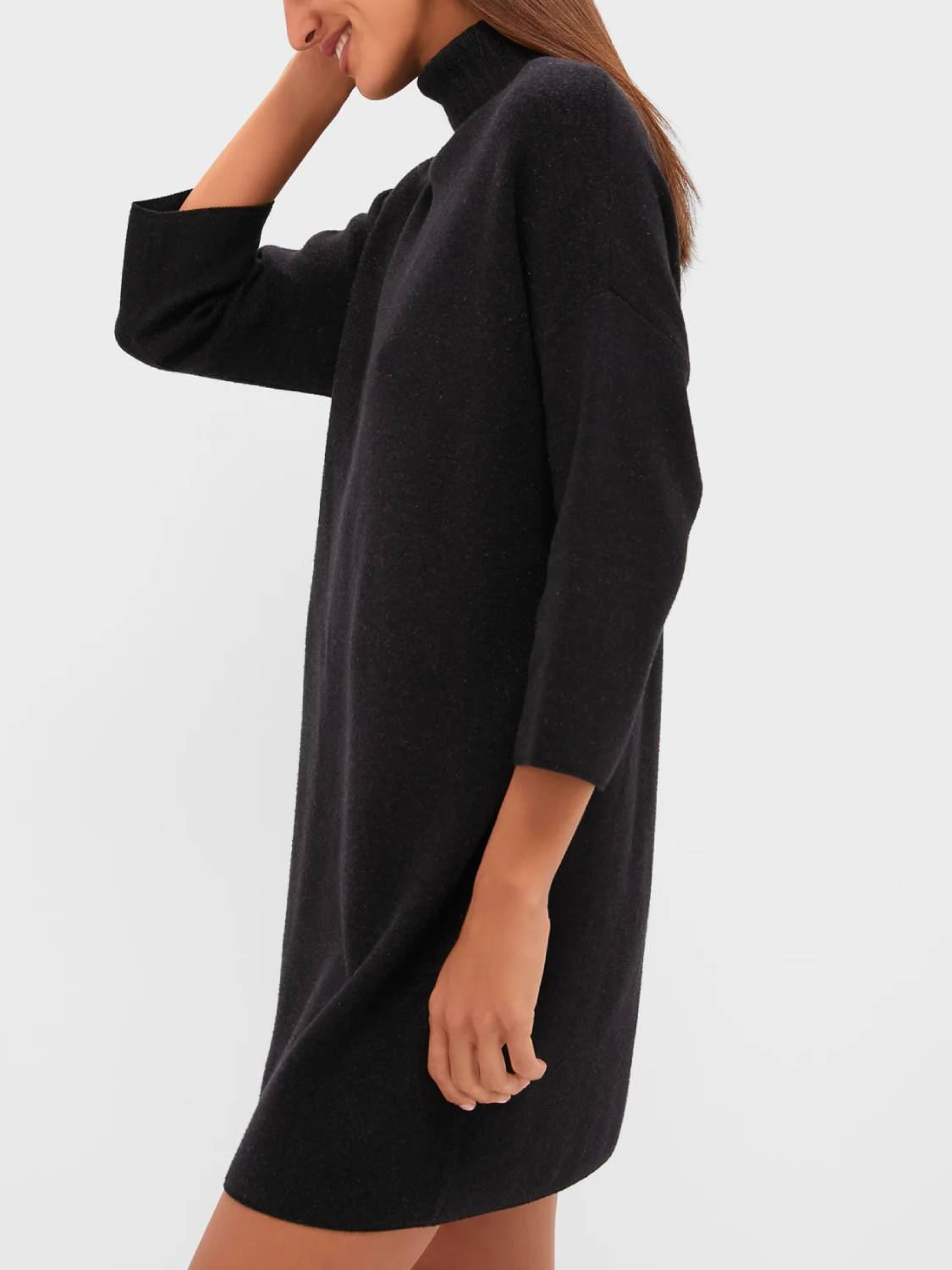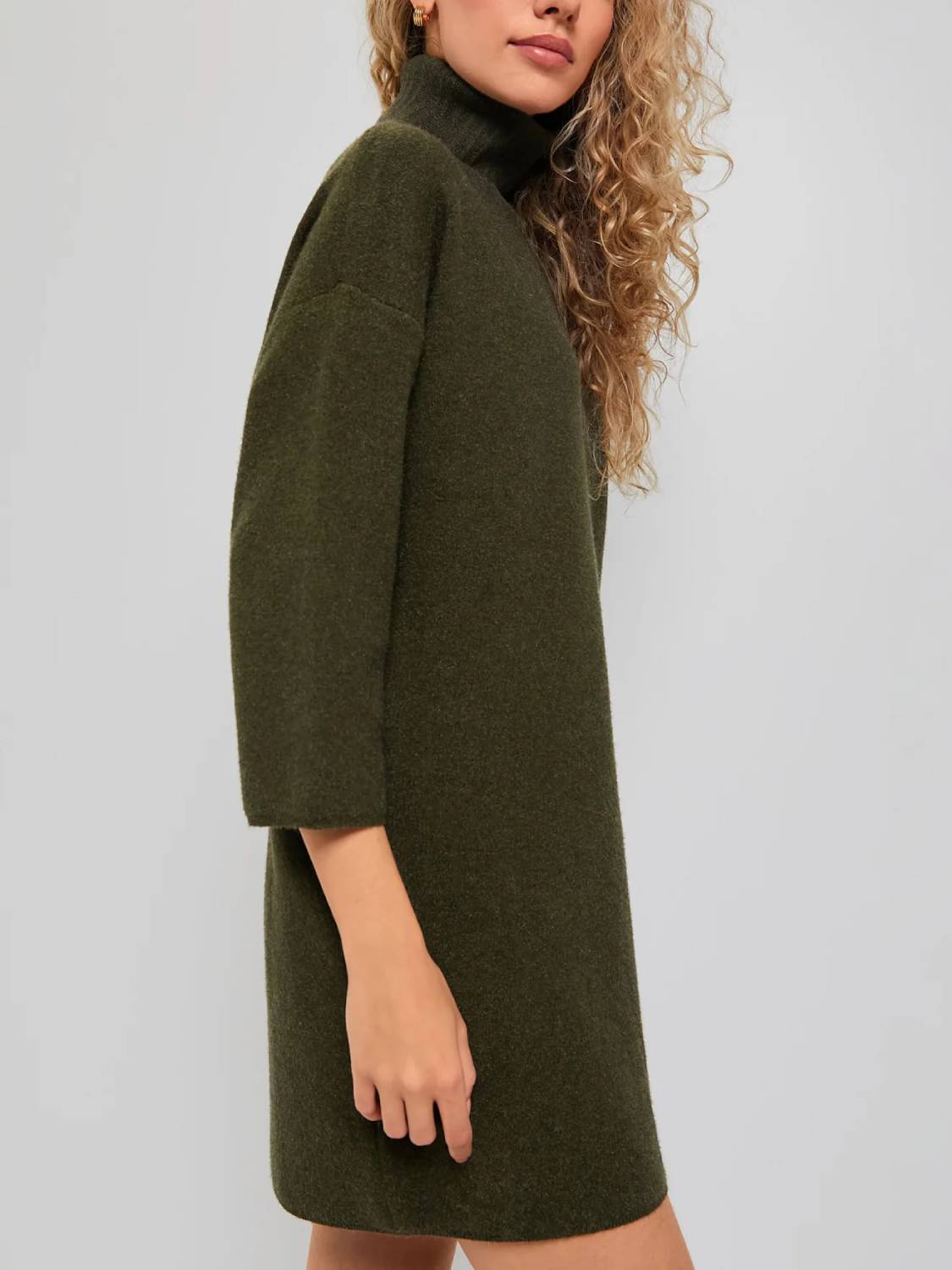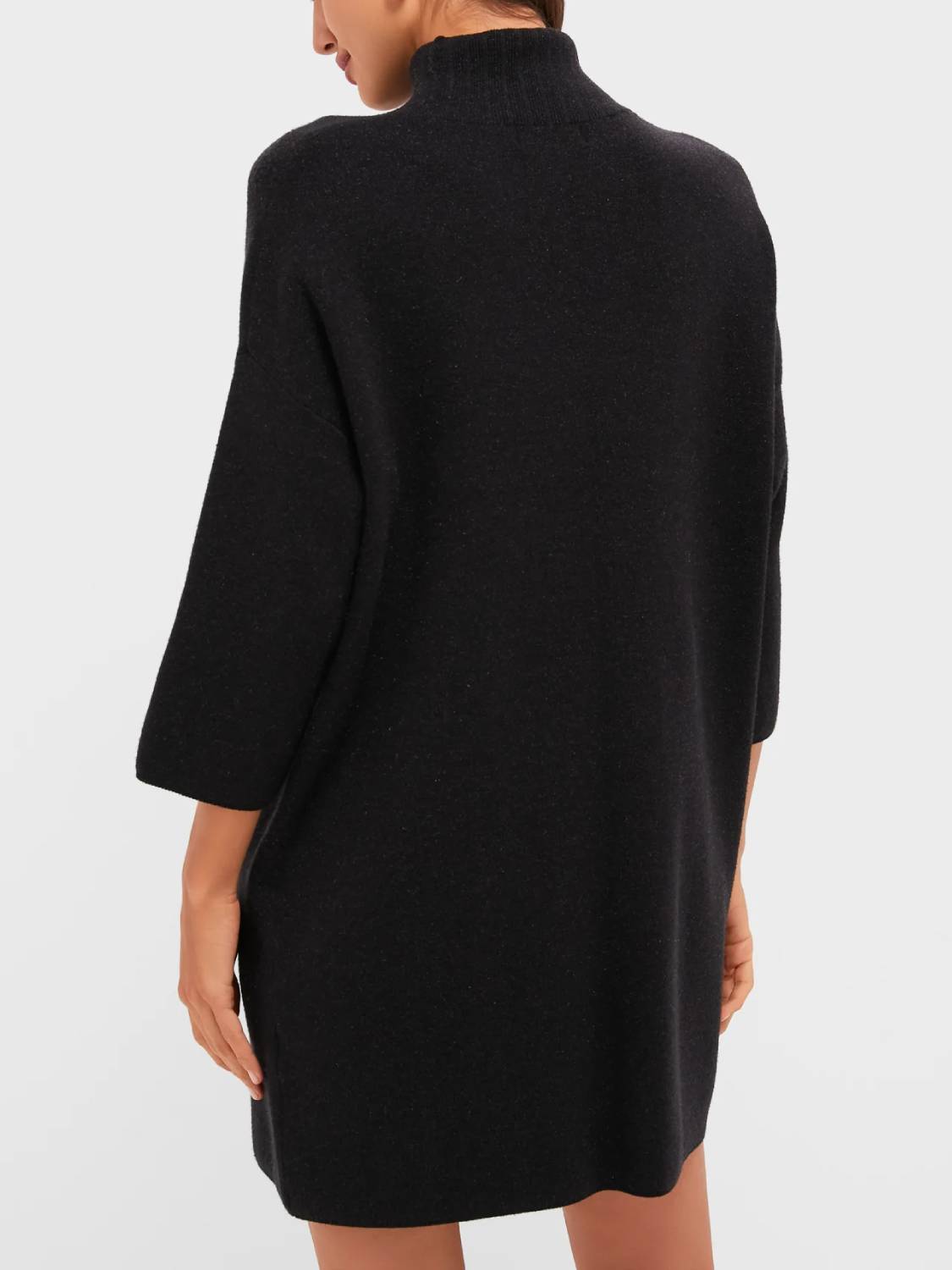 Meet the newest addition to your cold-weather wardrobe—the classic turtleneck sweater dress. This modern dress features comfortable fabric, a high neckline, and short yet minimal sleeves—perfect for cool fall days, holiday parties, and winter get-togethers!