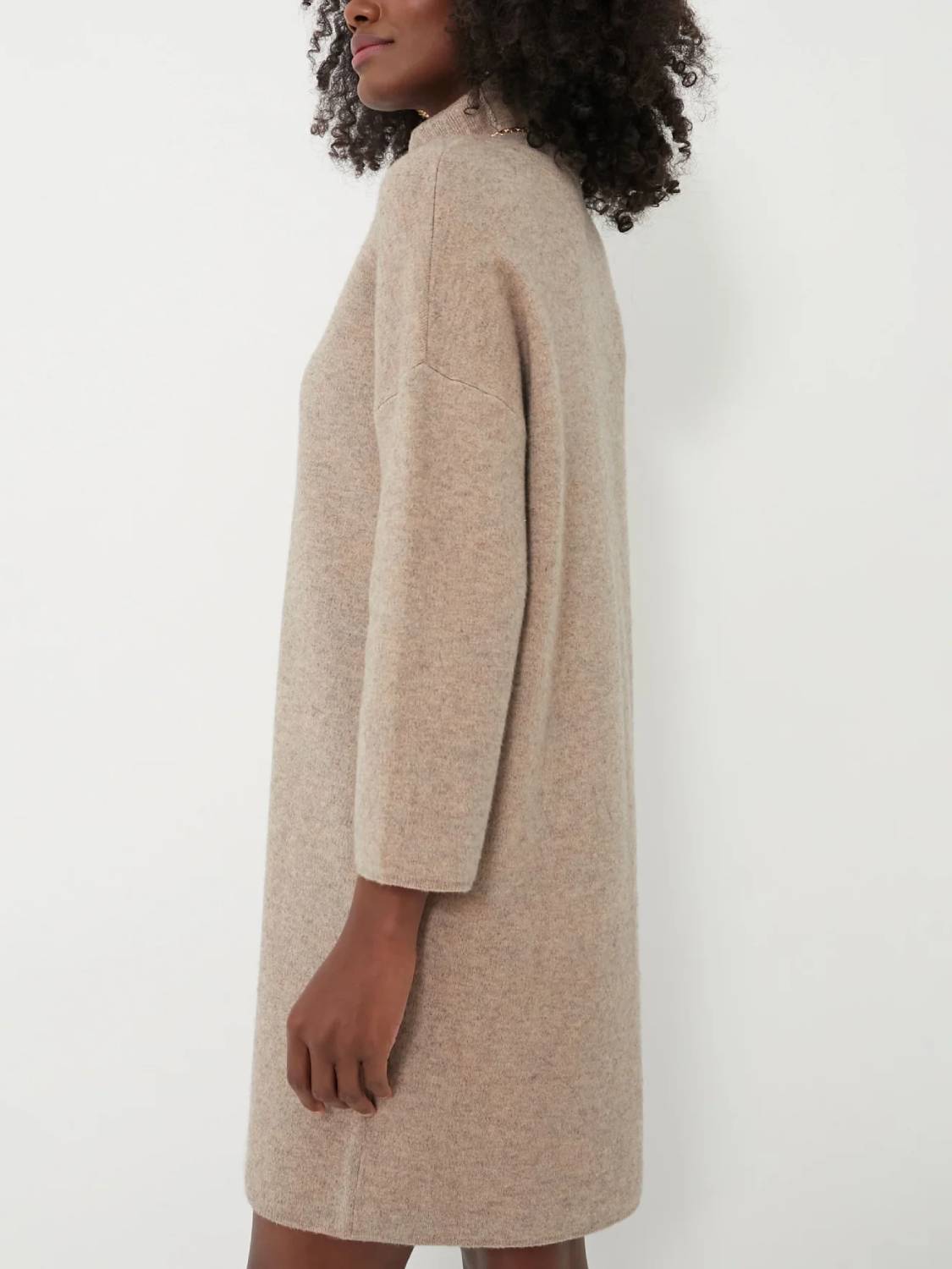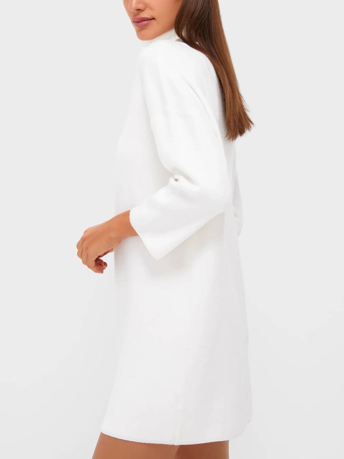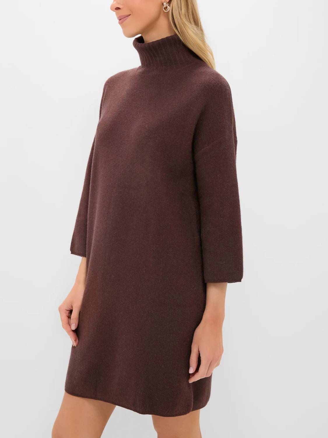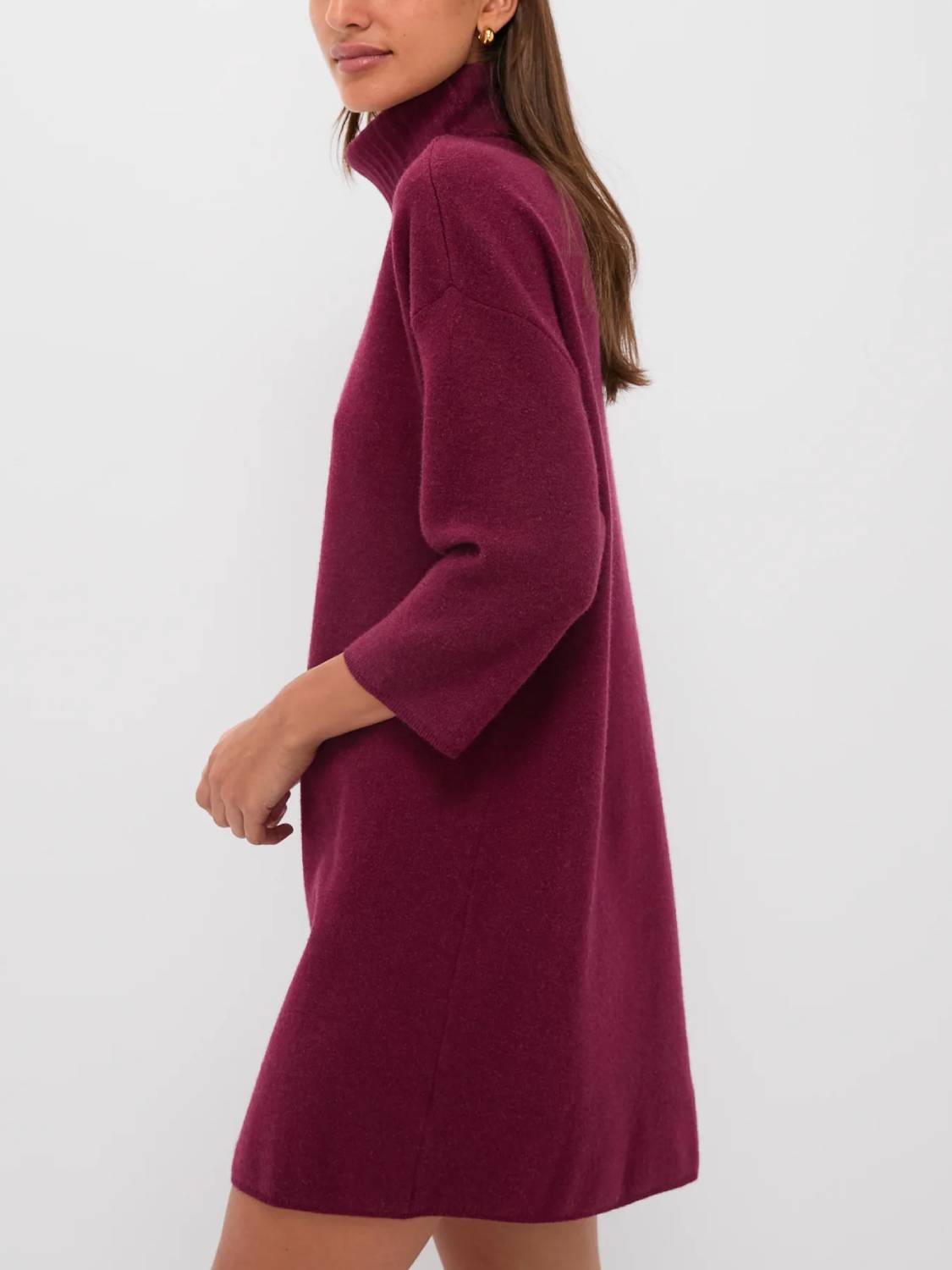 Meet the newest addition to your cold-weather wardrobe—the classic turtleneck sweater dress. This modern dress features comfortable fabric, a high neckline, and short yet minimal sleeves—perfect for cool fall days, holiday parties, and winter get-togethers!