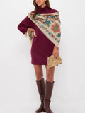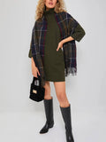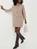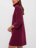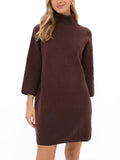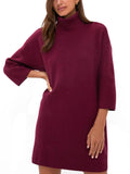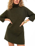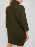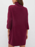 Women's Classic Turtleneck Three-Quarter Sleeve Knitted Sweater Dress