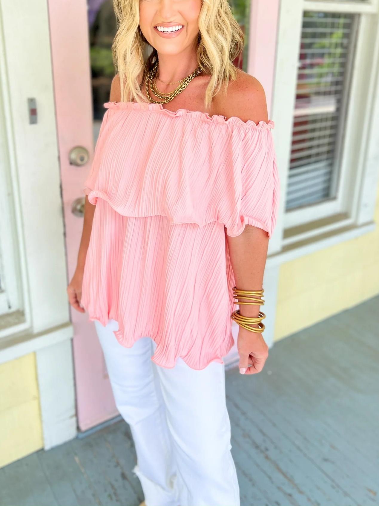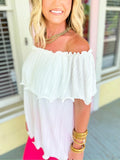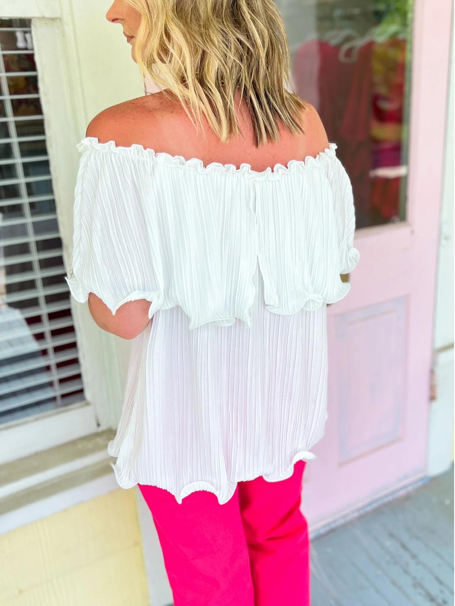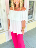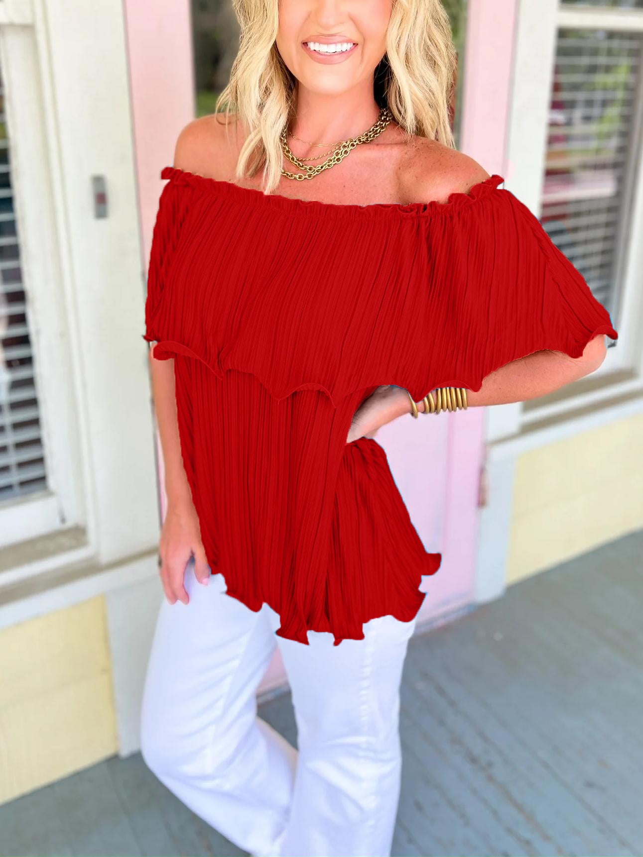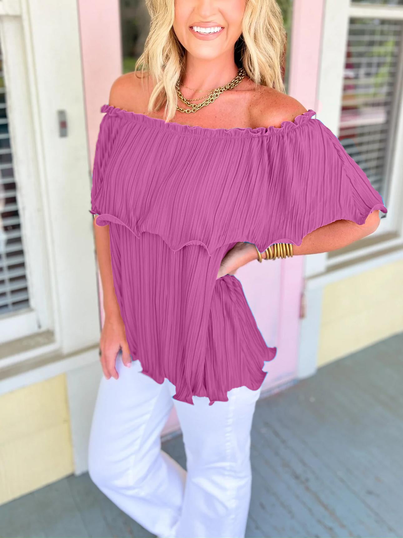 Show off your effortless glamour with the Clear View Off-the-shoulder Top. Featuring a playful off-the-shoulder design, this tunic top is embellished with delicate ruffles and ruching to add a playful touch to your look.