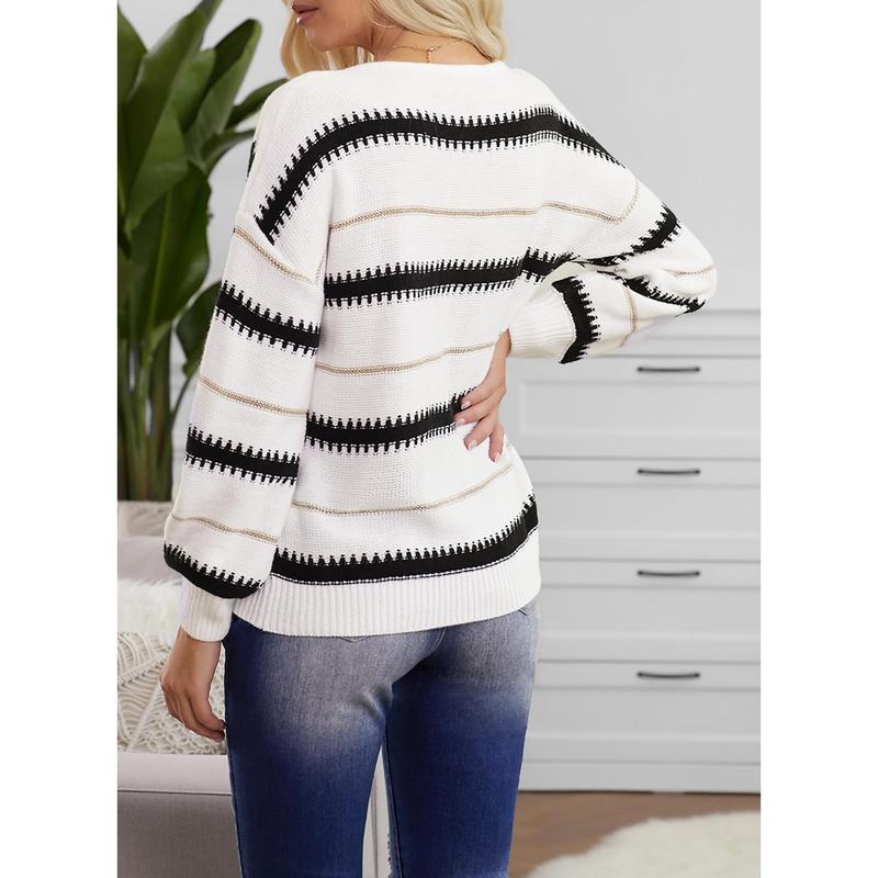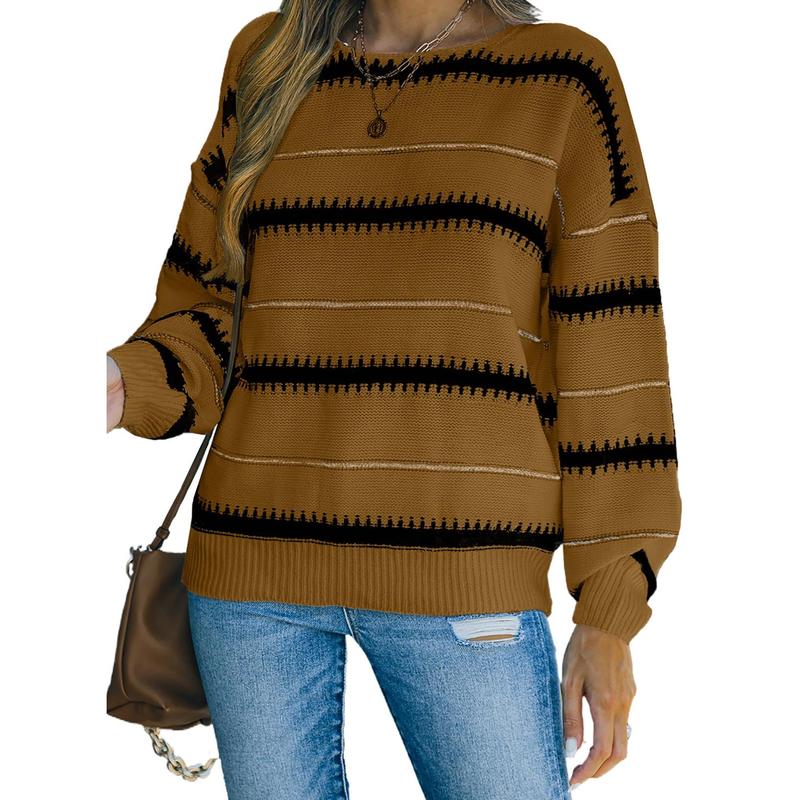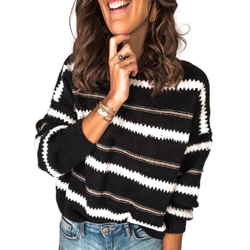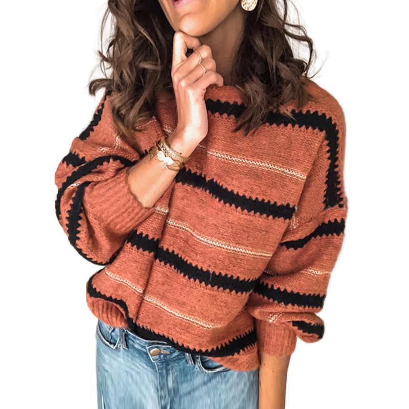 Made of soft and skin-friendly high quality knitted material, Striped sweater is very lightweight, soft and breathable,the Casual knit sweater for women to wear in cold morning, spring, fall or winter days.