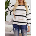 Womens Color Block Sweaters Long Sleeve Crewneck Pullover Knit Jumper Tops