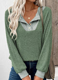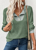 Our Button Up V Neck Sweatshirt is such a nice piece that is super comfy and has a trendy but laid-back vibe! This stylish sweatshirt features a patchwork and colorblock design with a fashionable collar and provides comfort and warmth, making it ideal for cool weather or casual everyday wear.