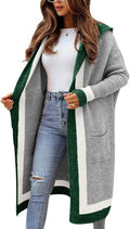 Women's Colorblock Long Knit Hooded Cardigan Coat