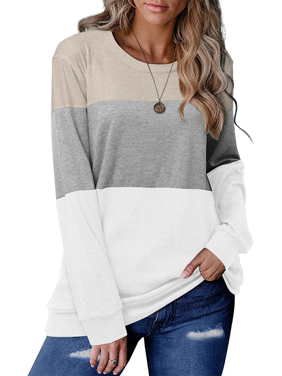 Women's Colorblock Striped Long Sleeve Casual Sweatshirt Tops