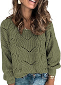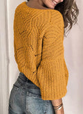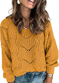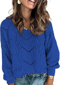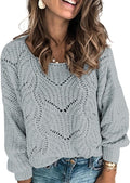 Womens Crewneck Cute Elegant Soft Long Sleeve Hollow Cable Knit Pullover Tops