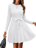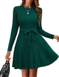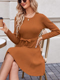 Women's Crewneck Long Sleeve Ribbed Knit Dress with Belt