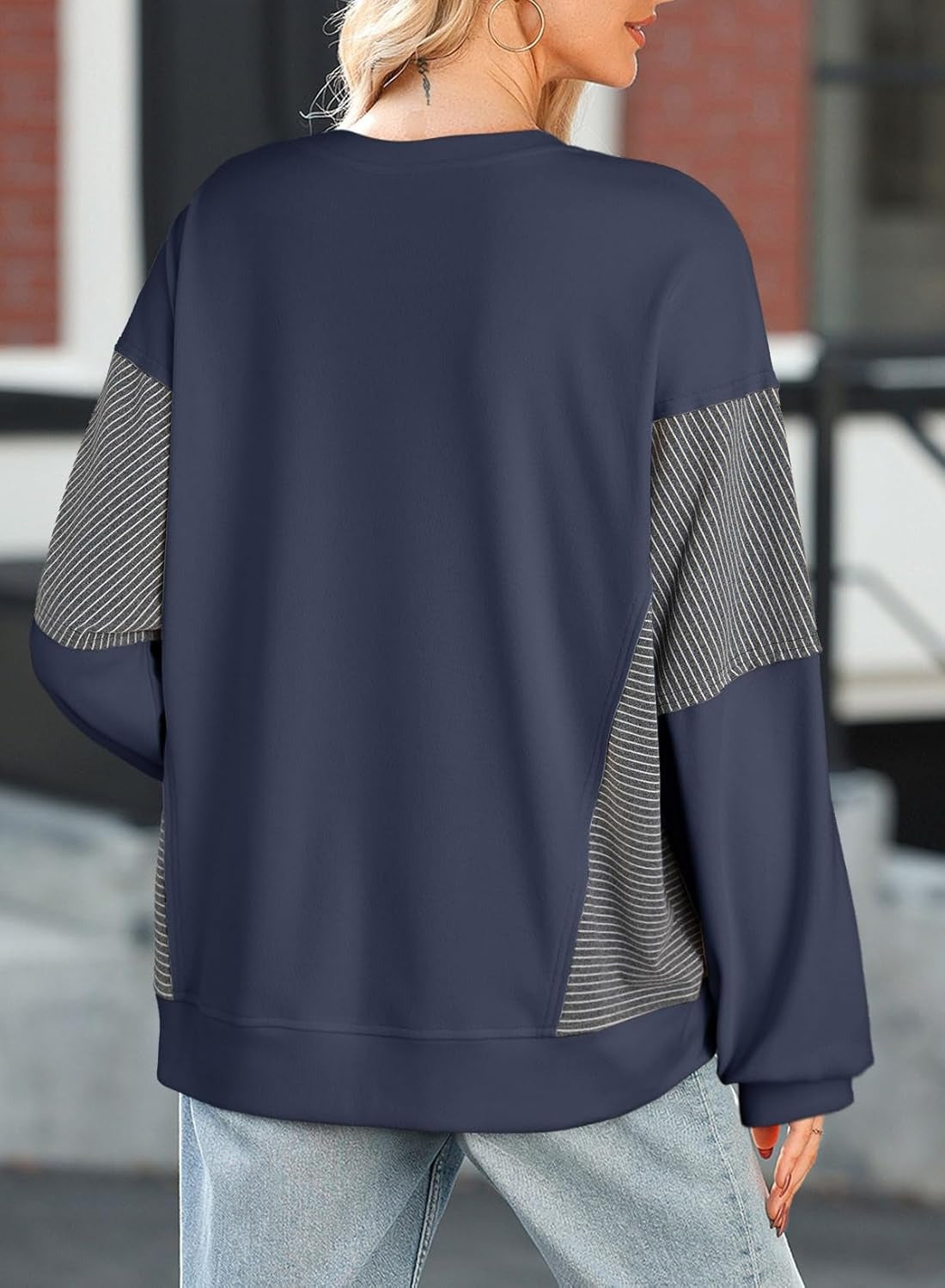 Women's Crewneck Patchwork Stripe Long Sleeve Pullover Sweatshirts