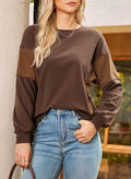 Slouchy and soft! This mixed-fabric sweatshirt keeps things casual and cute, making it a perfect choice for cooler weather. Chic contrast paneling and casual crewneck, it's ideal for various casual settings, from home to outings or gatherings with friends.