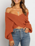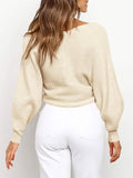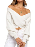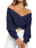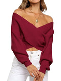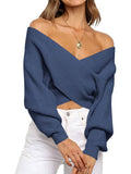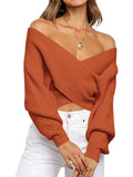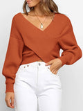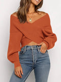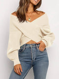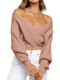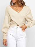Women's Cross Wrap Front Solid Color V Neck Long Sleeve Sweater