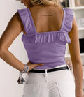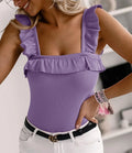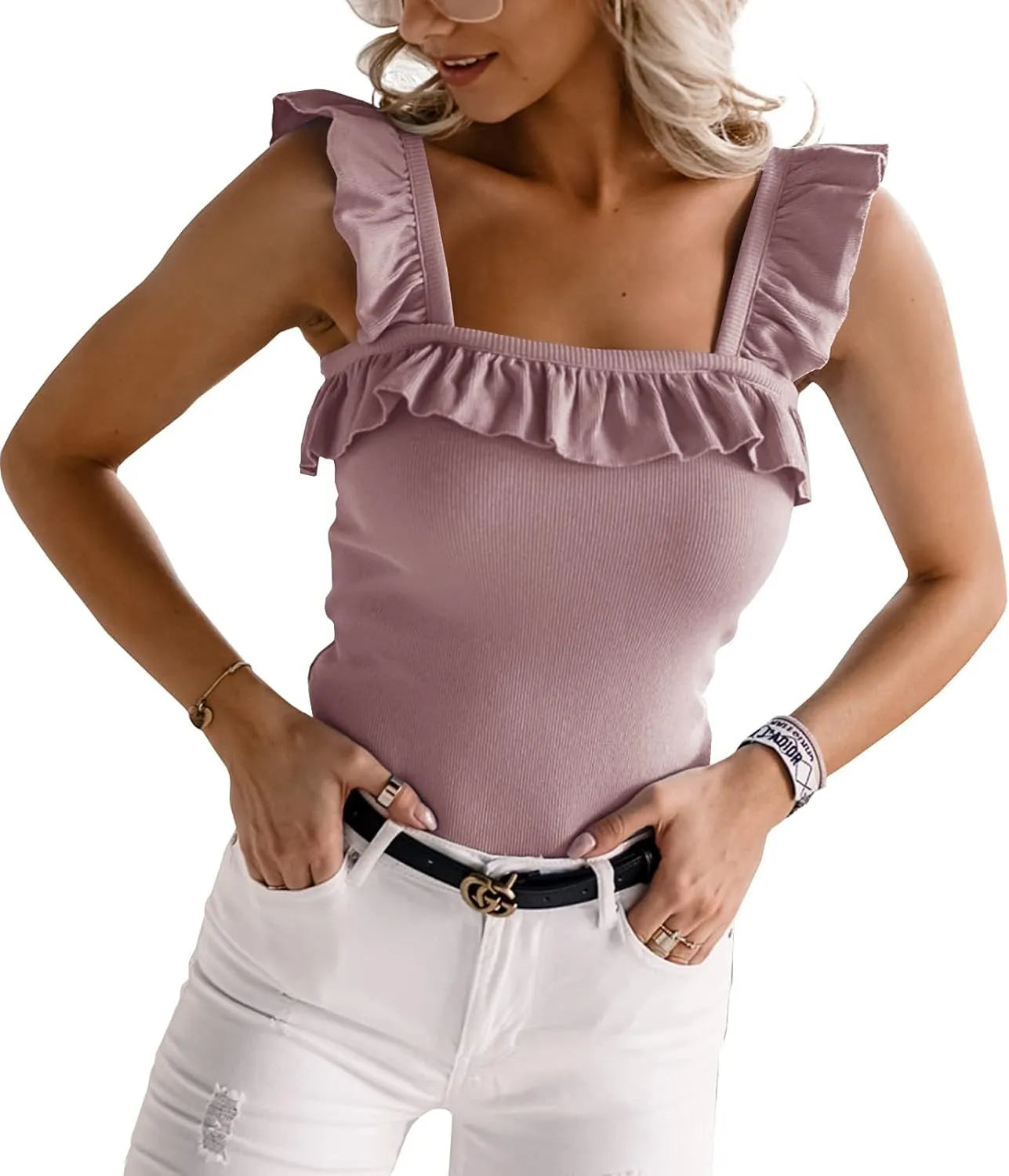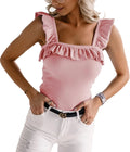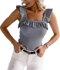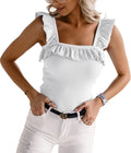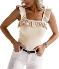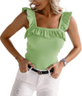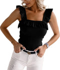 Women's Cute Ruffle Wide Strap Square Neck Knitted Tank Tops