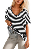 Elevate your casual wardrobe with our oversized striped color block top! These tees feature comfortable fabric, short sleeves and a relaxed fit for a relaxed, laid-back look.