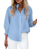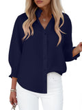 Womens Elegant 3/4 Smocked Sleeve Blouse Tops