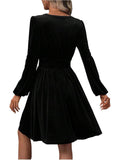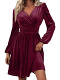 Women's Elegant V Neck Long Sleeves Velvet Dress