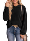 Women's Fall Casual Loose Long Sleeve Ribbed Knit Hoodie