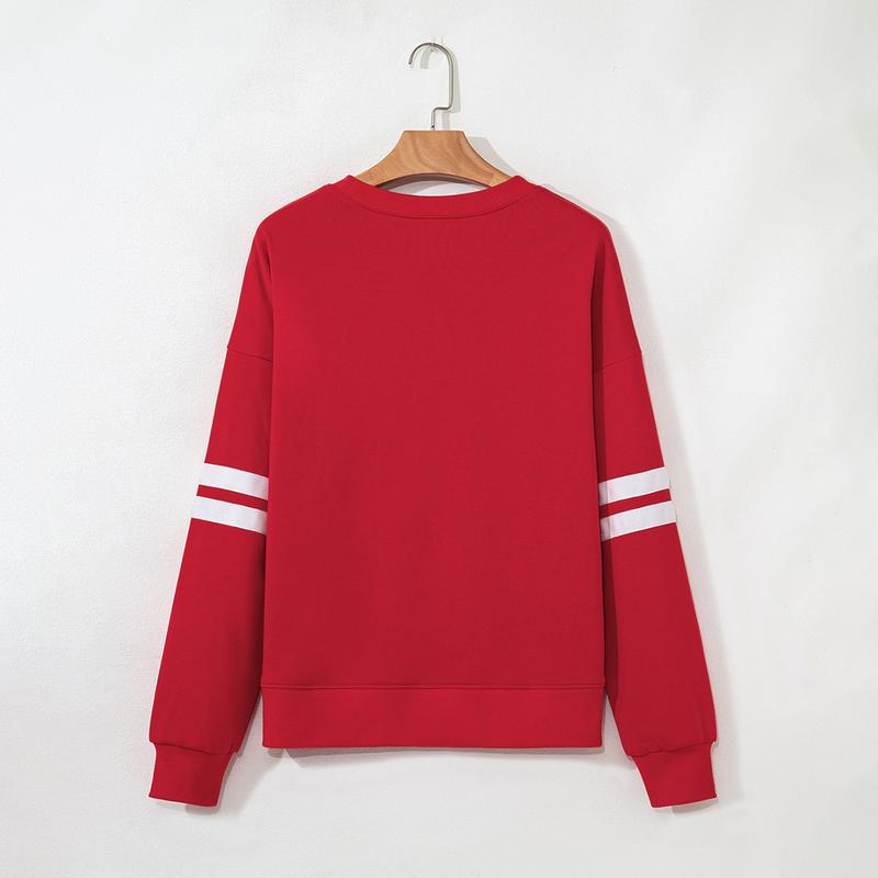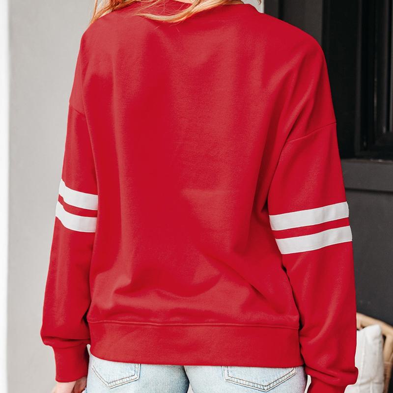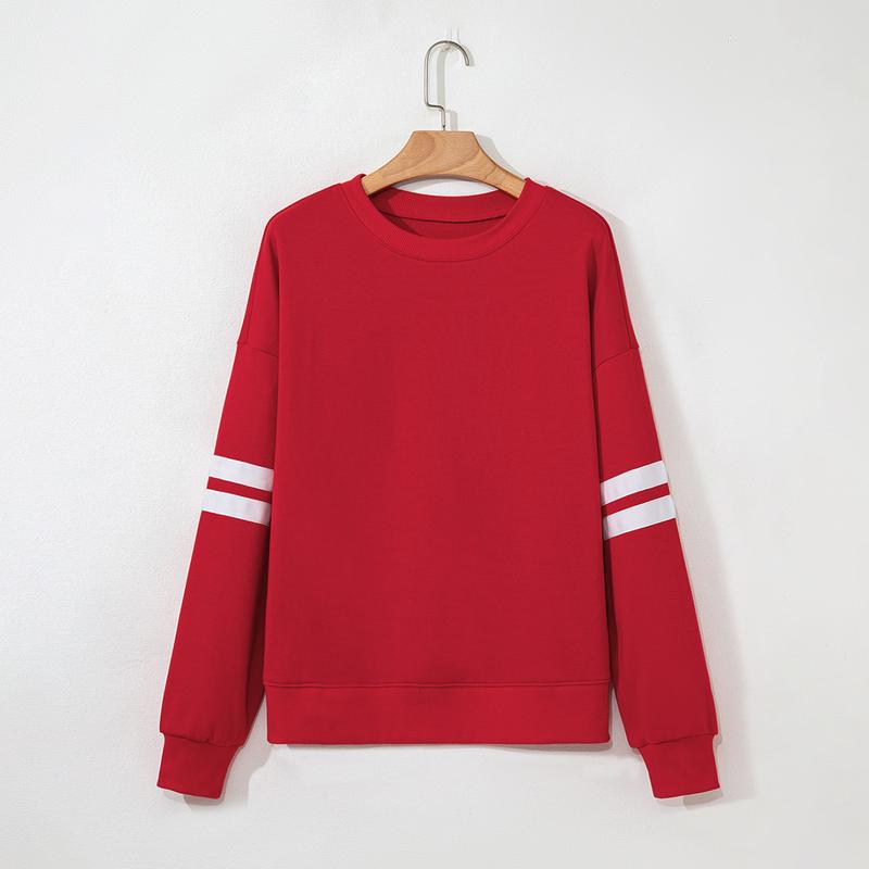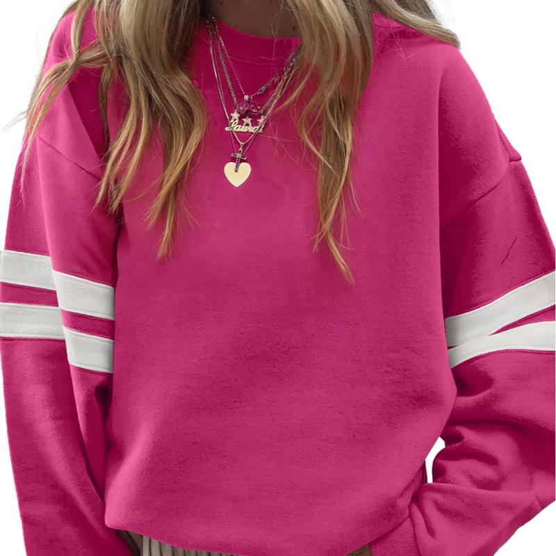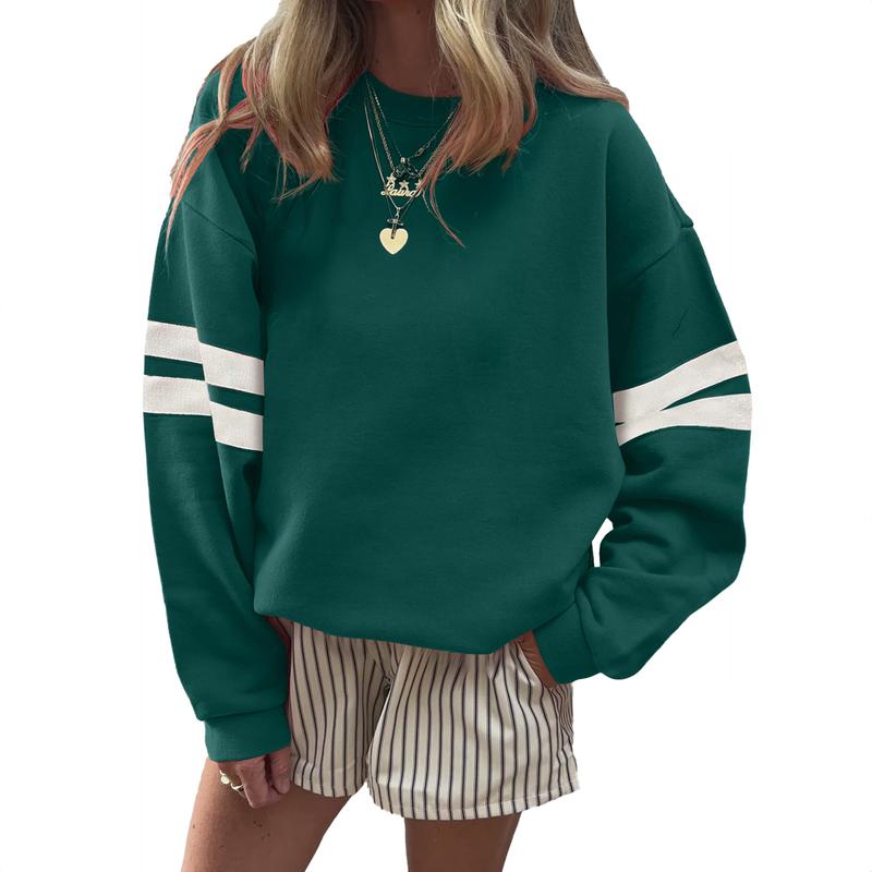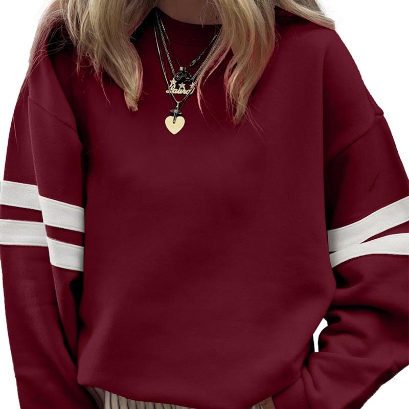 Women's Fall Clothing Contrast Stripe Crewneck Sweatshirt Oversized Long Sleeve Casual Pullover