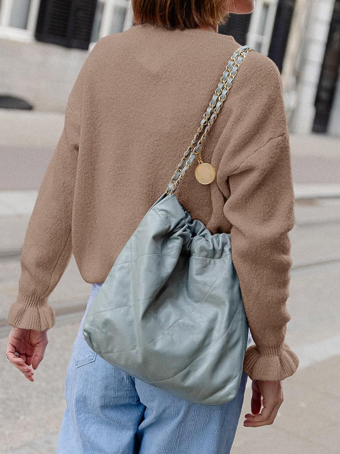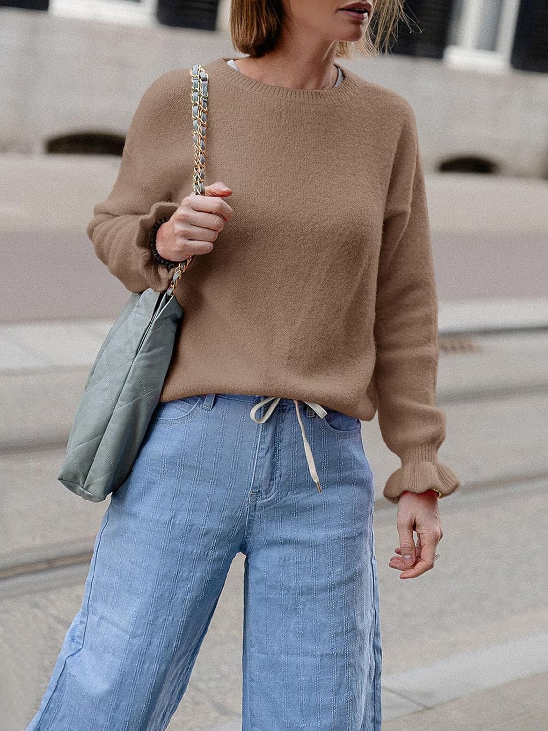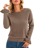 This fall sweaters for women trendy transition effortlessly from daily office wear to weekend outings, its elegant yet relaxed design suits both work and leisure effortlessly. Ruffle trim sleeves and a crew neckline add a chic, feminine touch to this crew neck sweater for women.
