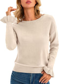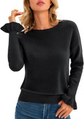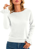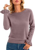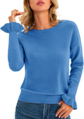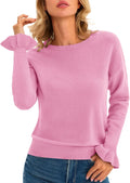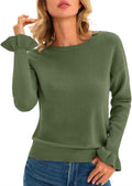 Womens Fall Crew Neck Sweaters Ruffle Long Sleeve Lightweight Soft Knit Casual Pullover Top