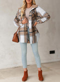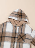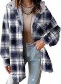 Women's Flannel Hooded Plaid Shacket Thick Coat Fuzzy Fleece Jacket