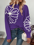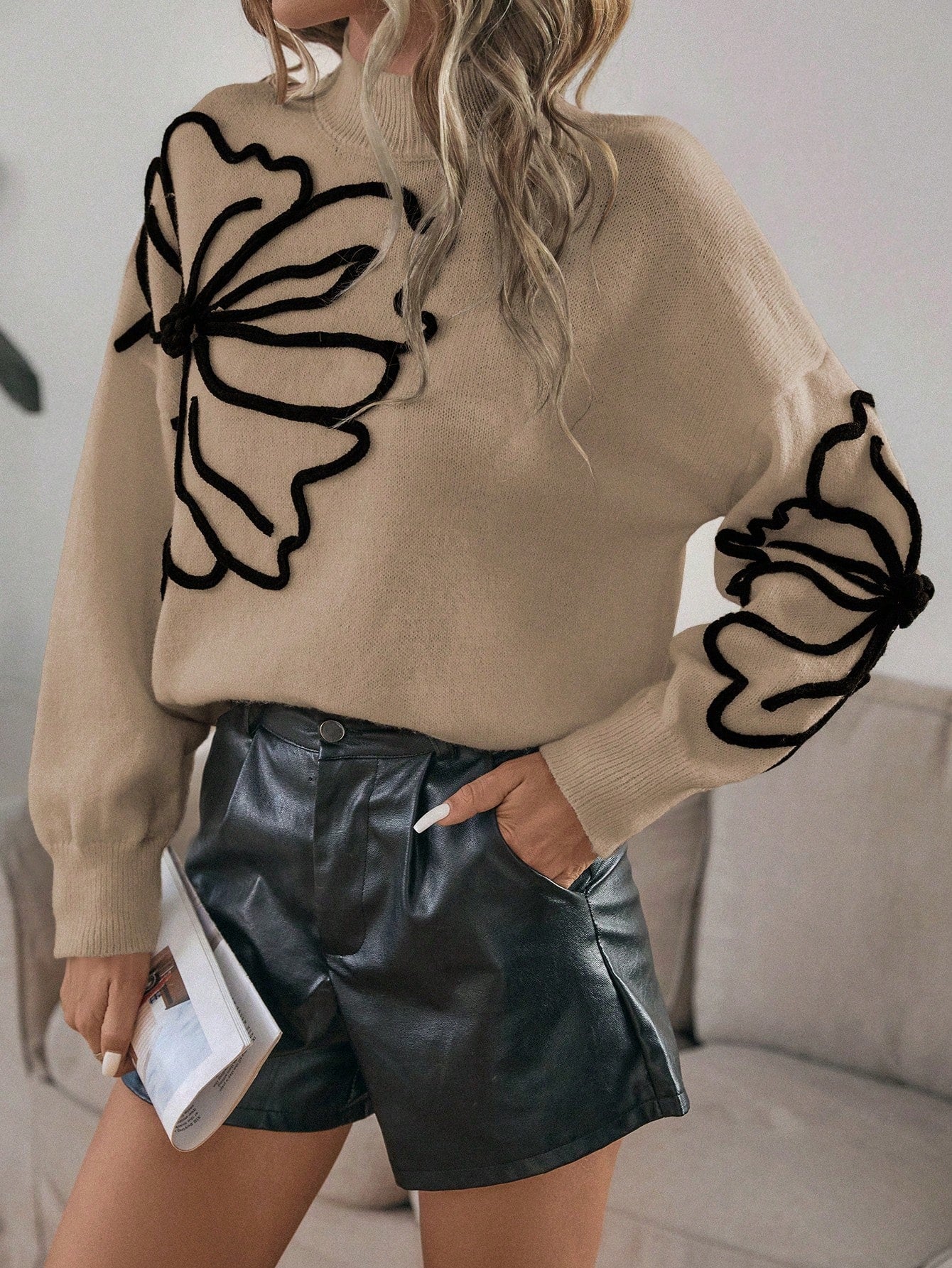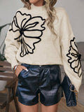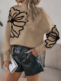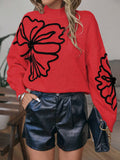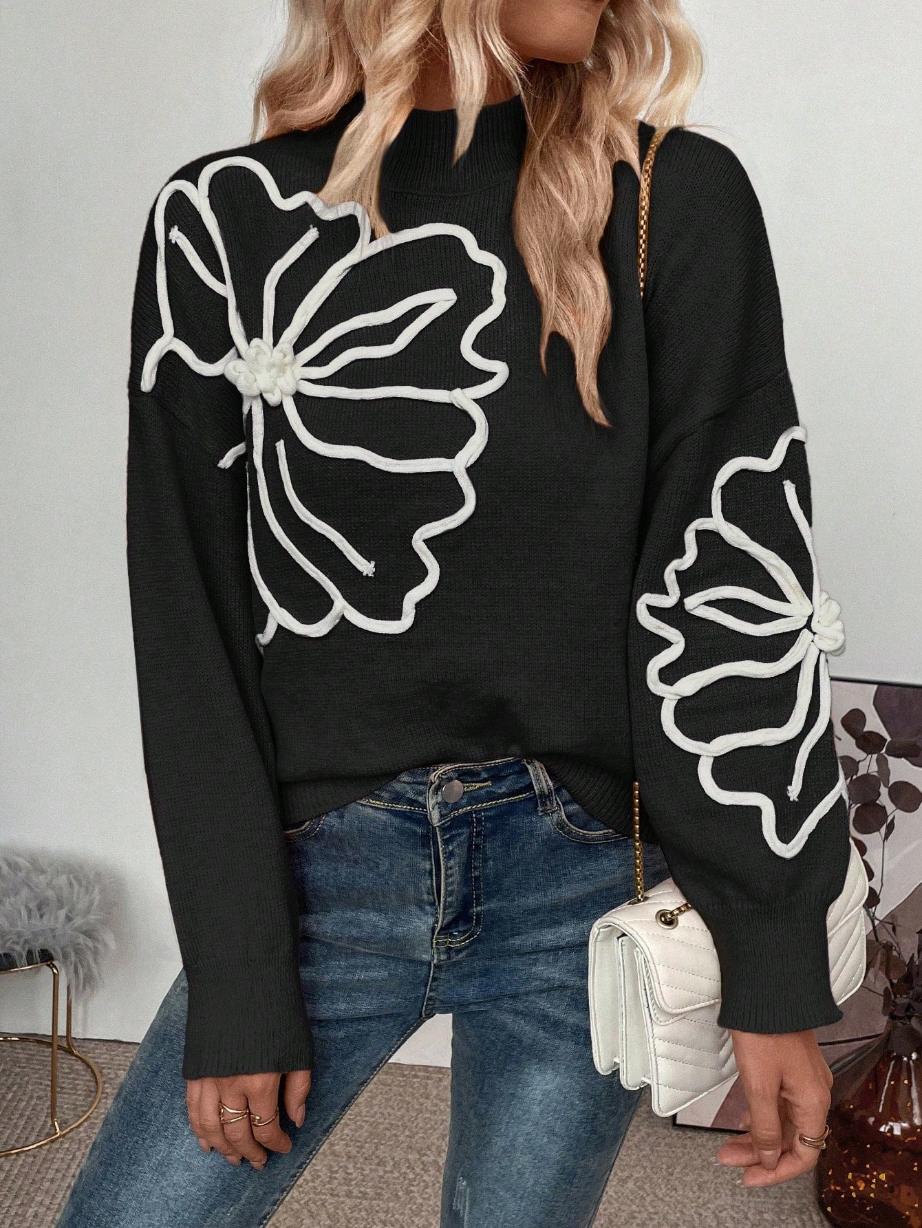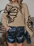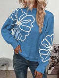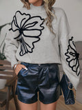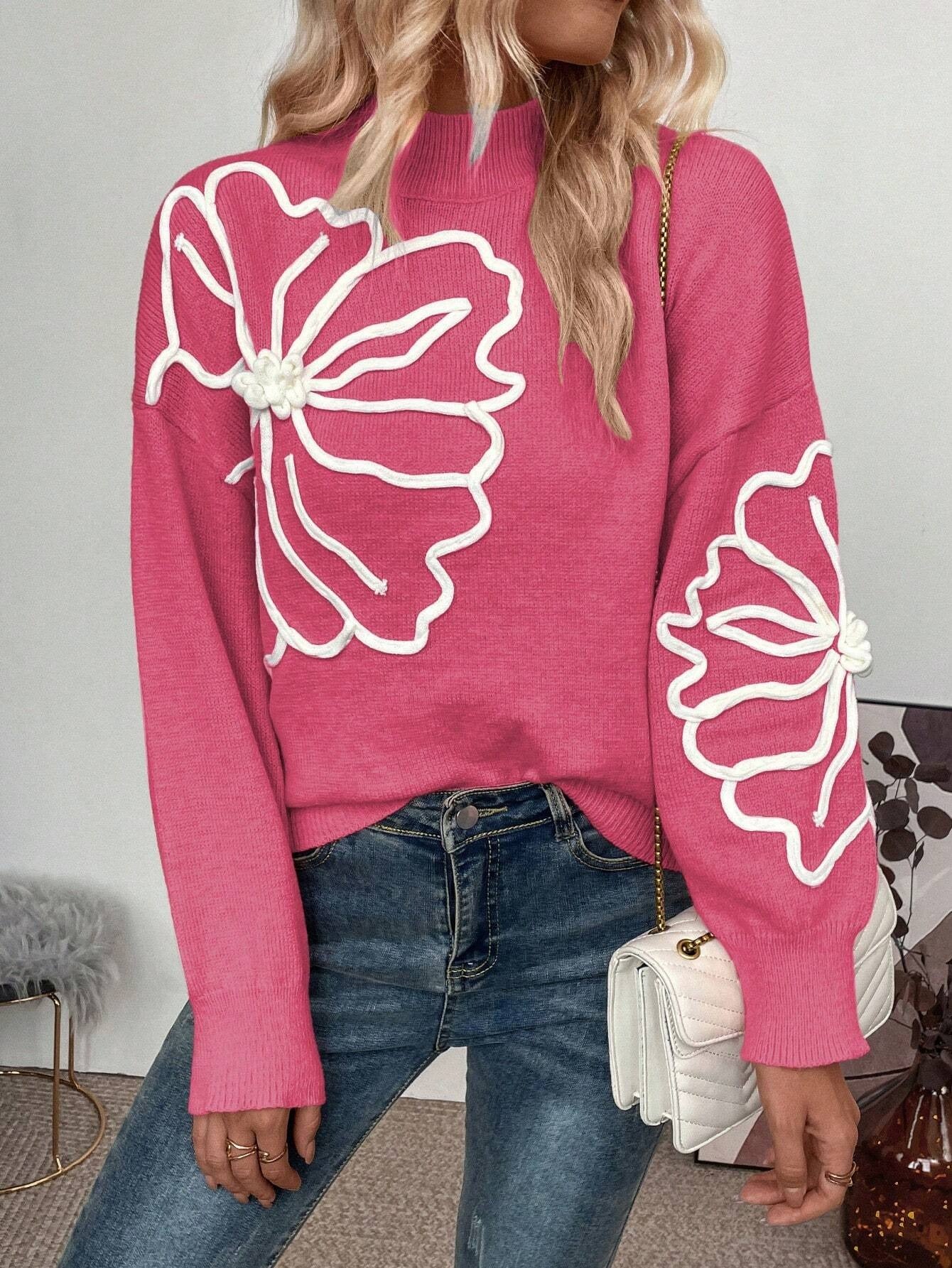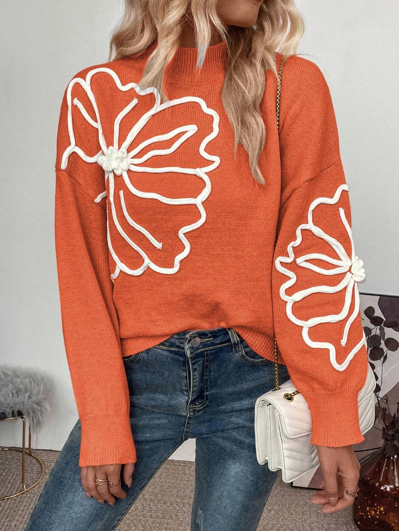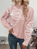 Women's Floral Mock Neck Long Sleeve Cute Pullover Knit Sweater Tops
