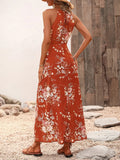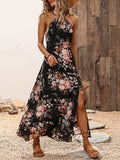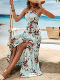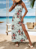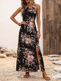 Women's Floral Print Halter Sleeveless Slit Maxi Dress