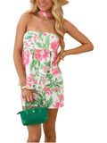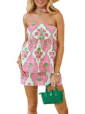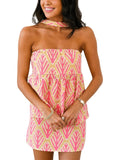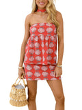 Women's Floral/Shell Print Strapless Tube Tops with Scarf Mini 2 Piece Skirts Set