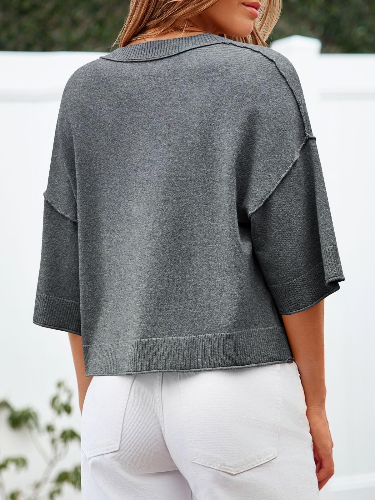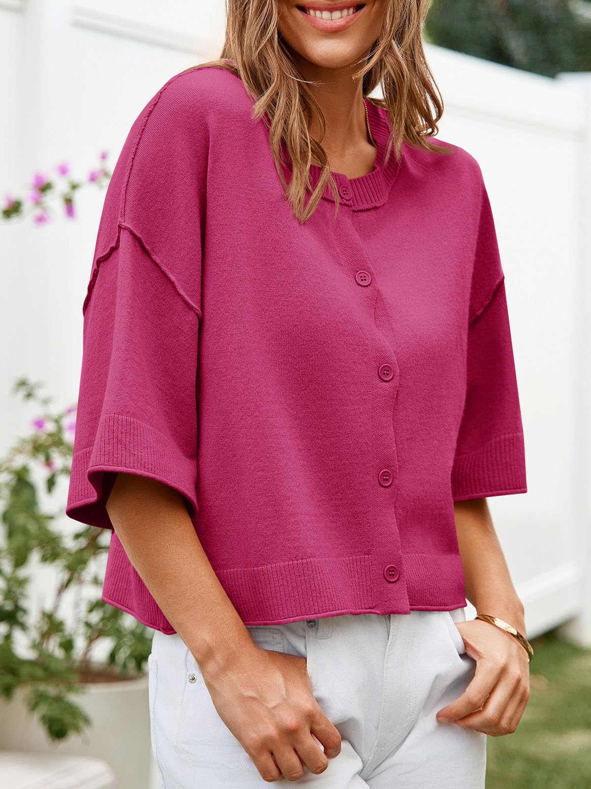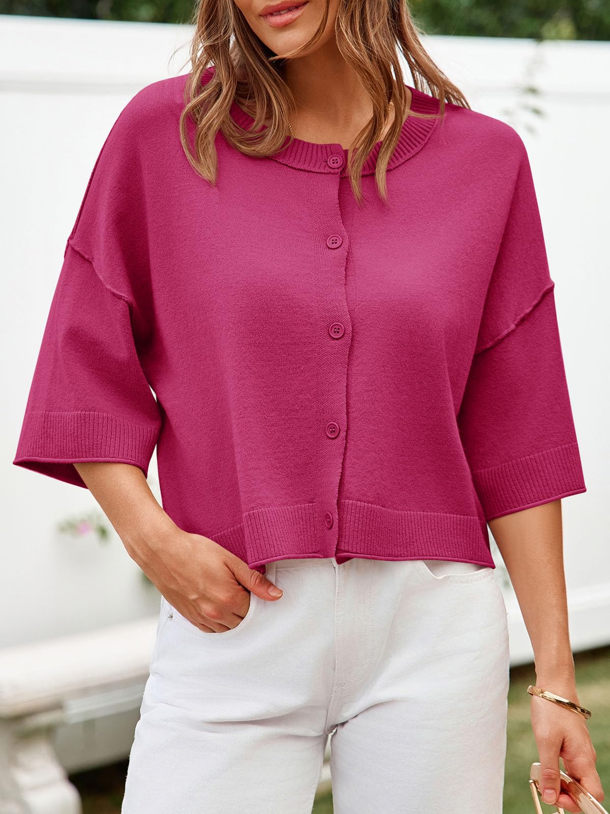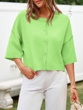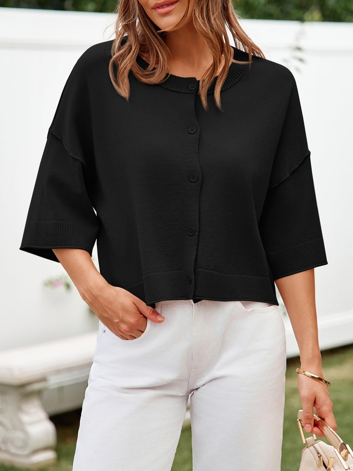 Womens Half Sleeve Button Down Oversized Lightweight Knit Cardigan Sweaters