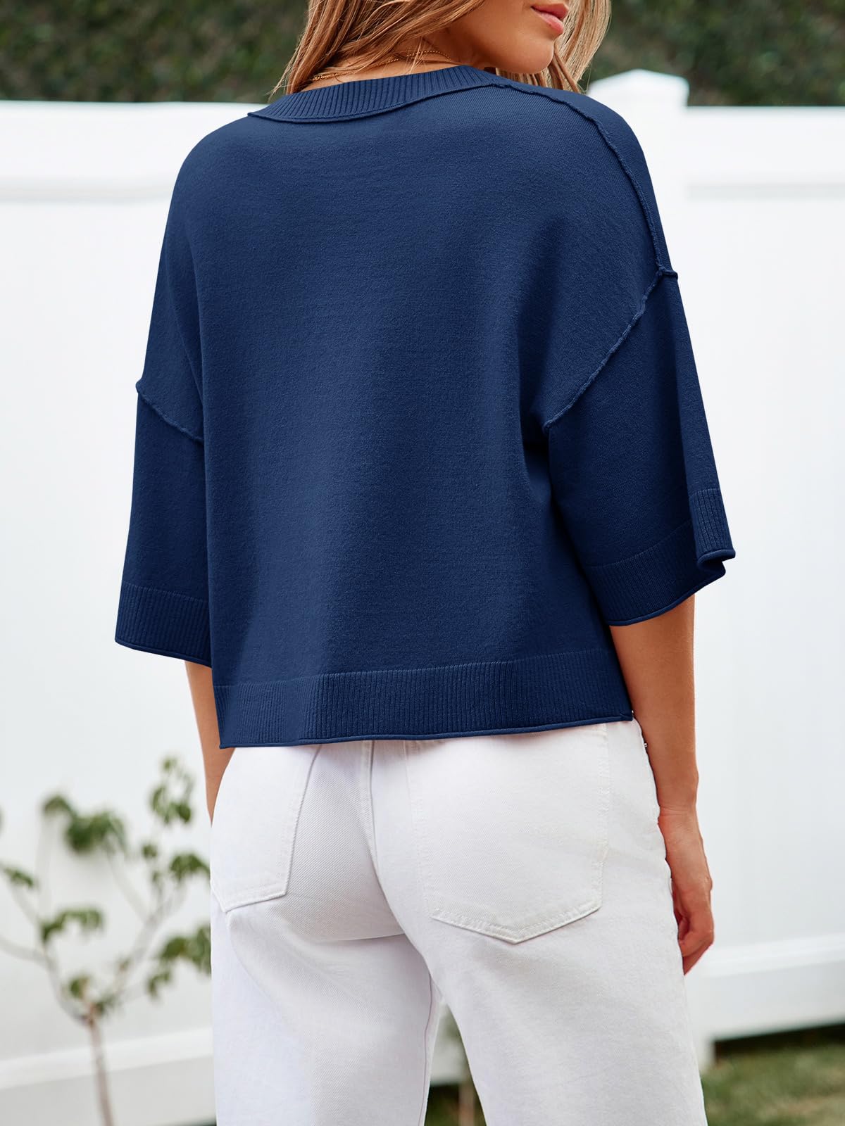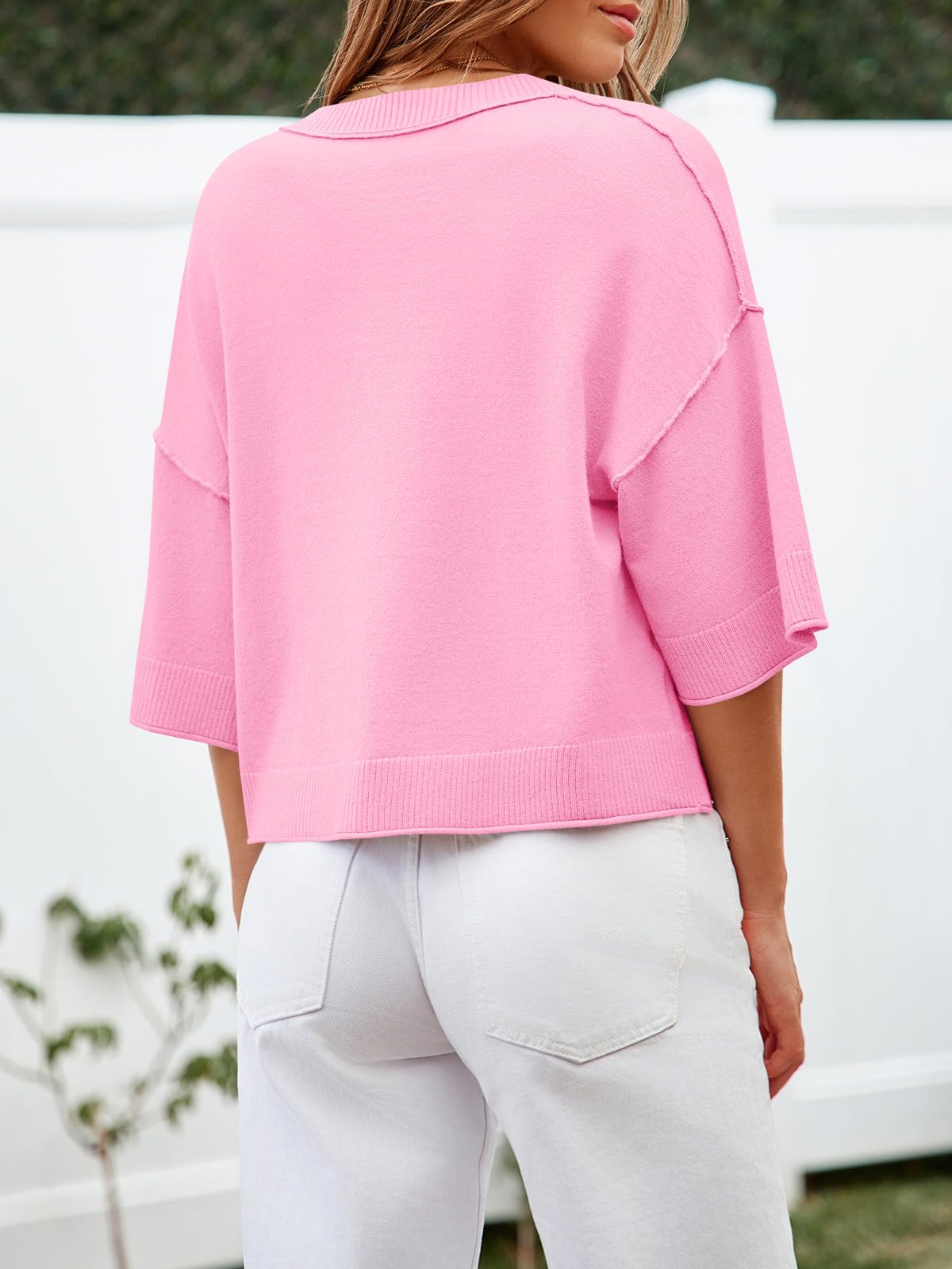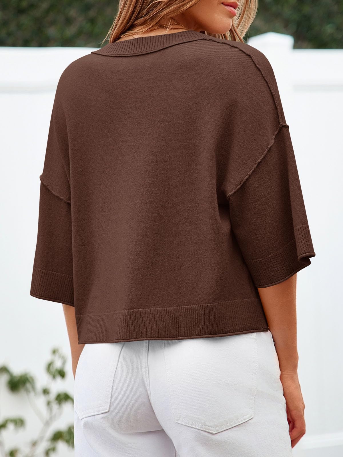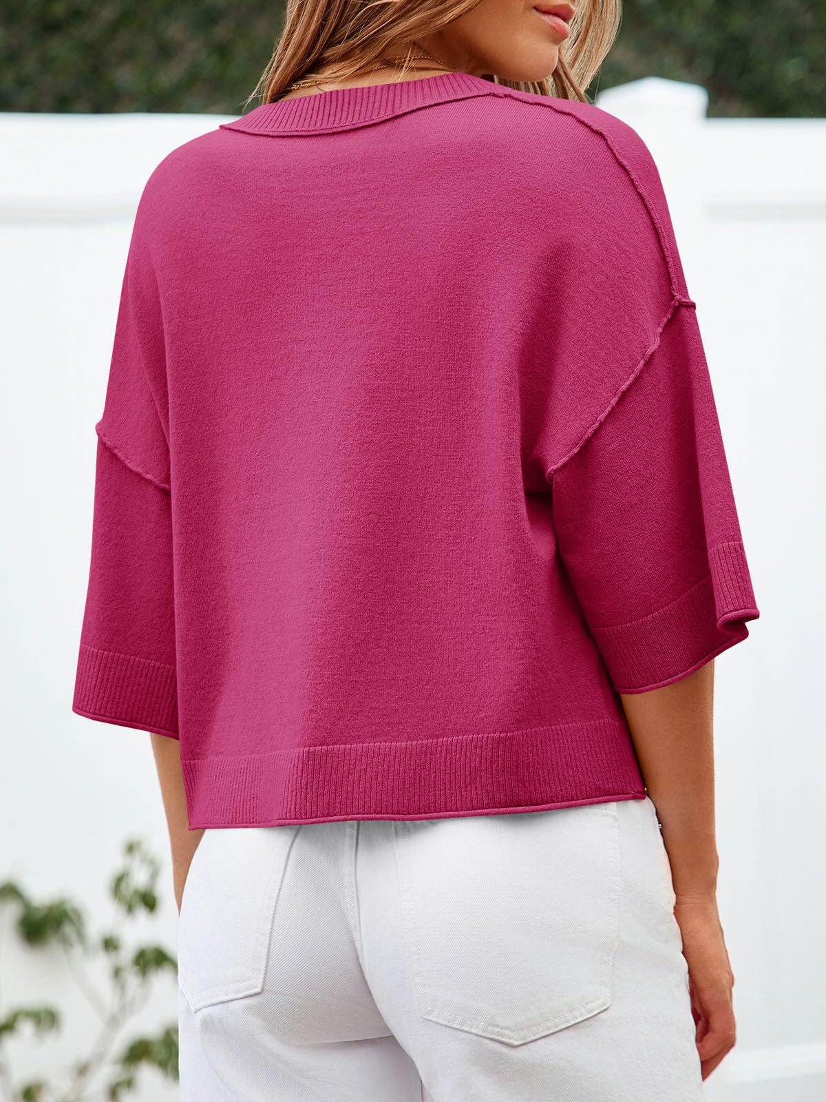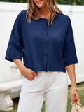 Womens Half Sleeve Button Down Oversized Lightweight Knit Cardigan Sweaters