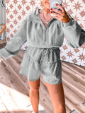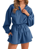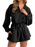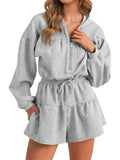 Women's Half Zip Long Sleeve Hoodies Drawstring Shorts Rompers