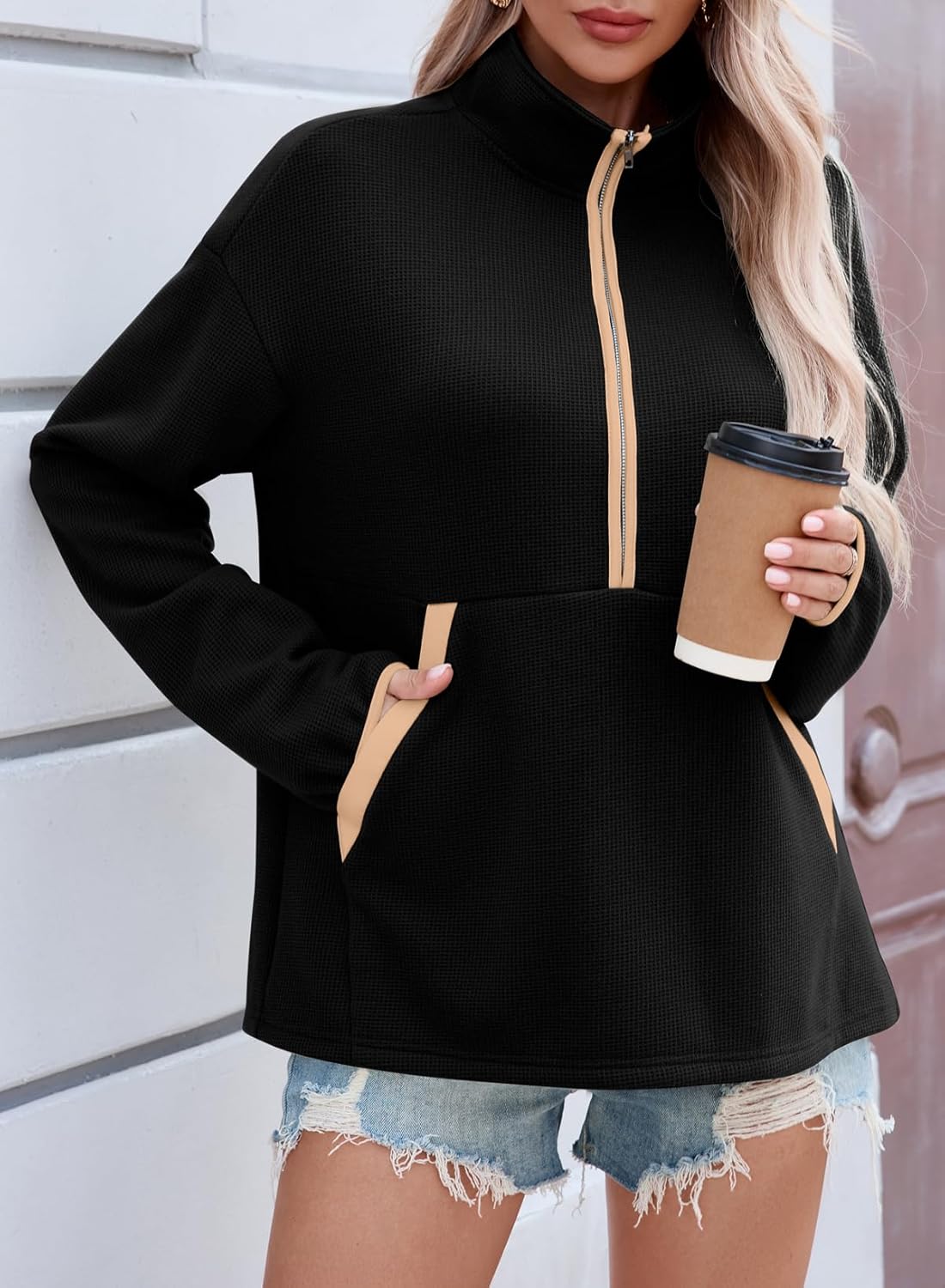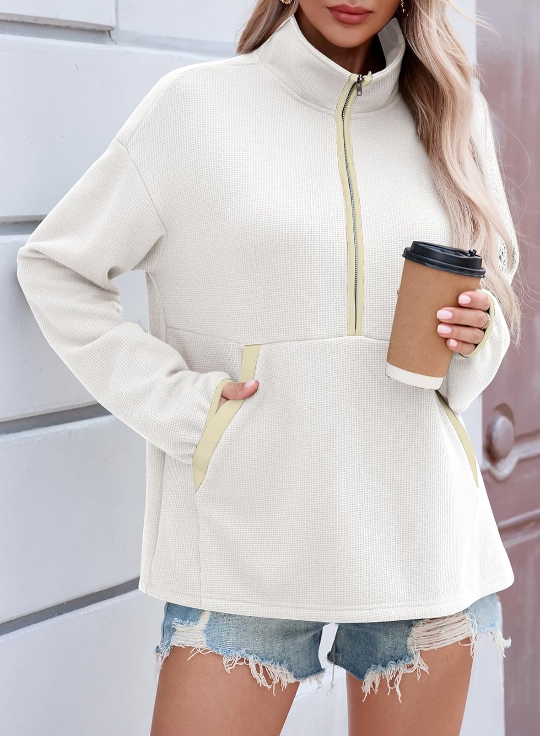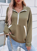 Womens Half Zip Waffle Knit Lightweight Mock Neck Pullover